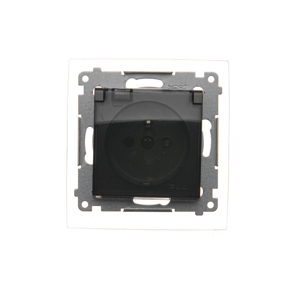 Simon 54 WMDW-53111x-048 Gniazdo wtyczkowe do wersji IP44 Z USZCZELKĄ (moduł) 16A, 250V~, zaciski śrubowe, klapka transparentna; antracyt Uszczelka do ramek S54 PREMIUM