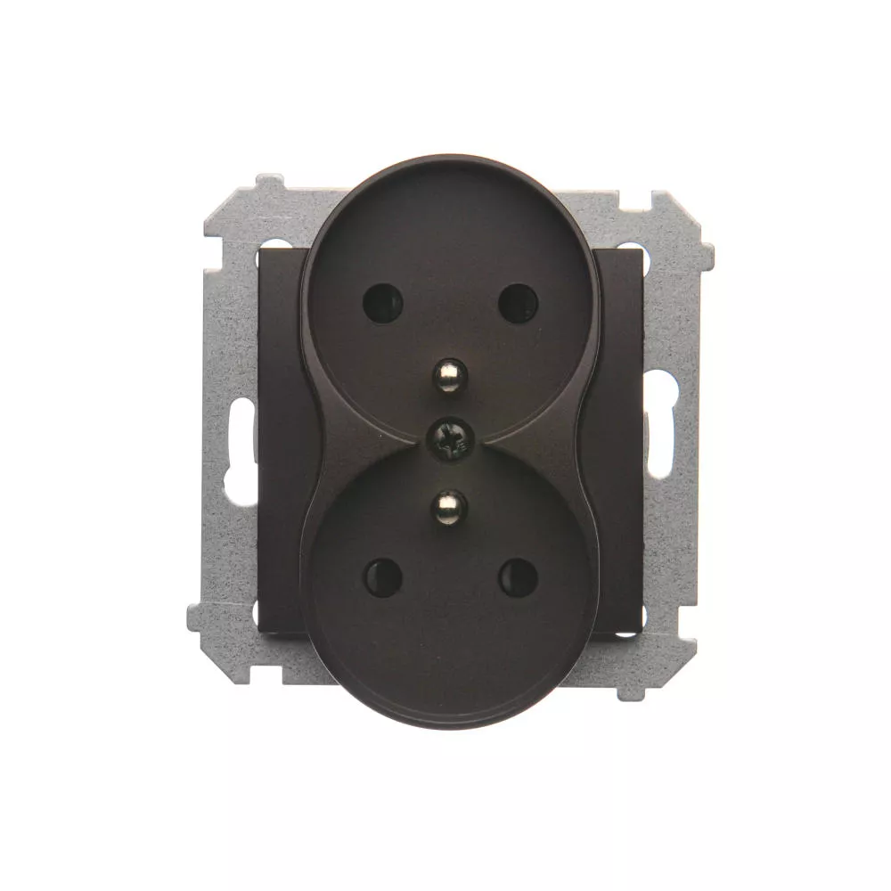 Simon 54 WMDW-00210M-046 Gniazdo wtyczkowe podwójne z uziemieniem z przesłonami (moduł) 16A, 250V~, zaciski śrubowe; brąz mat