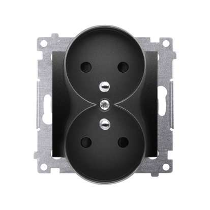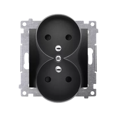 Simon 54 WMDW-00210M-049 Gniazdo wtyczkowe podwójne z uziemieniem z przesłonami (moduł) 16A, 250V~, zaciski śrubowe; czarny