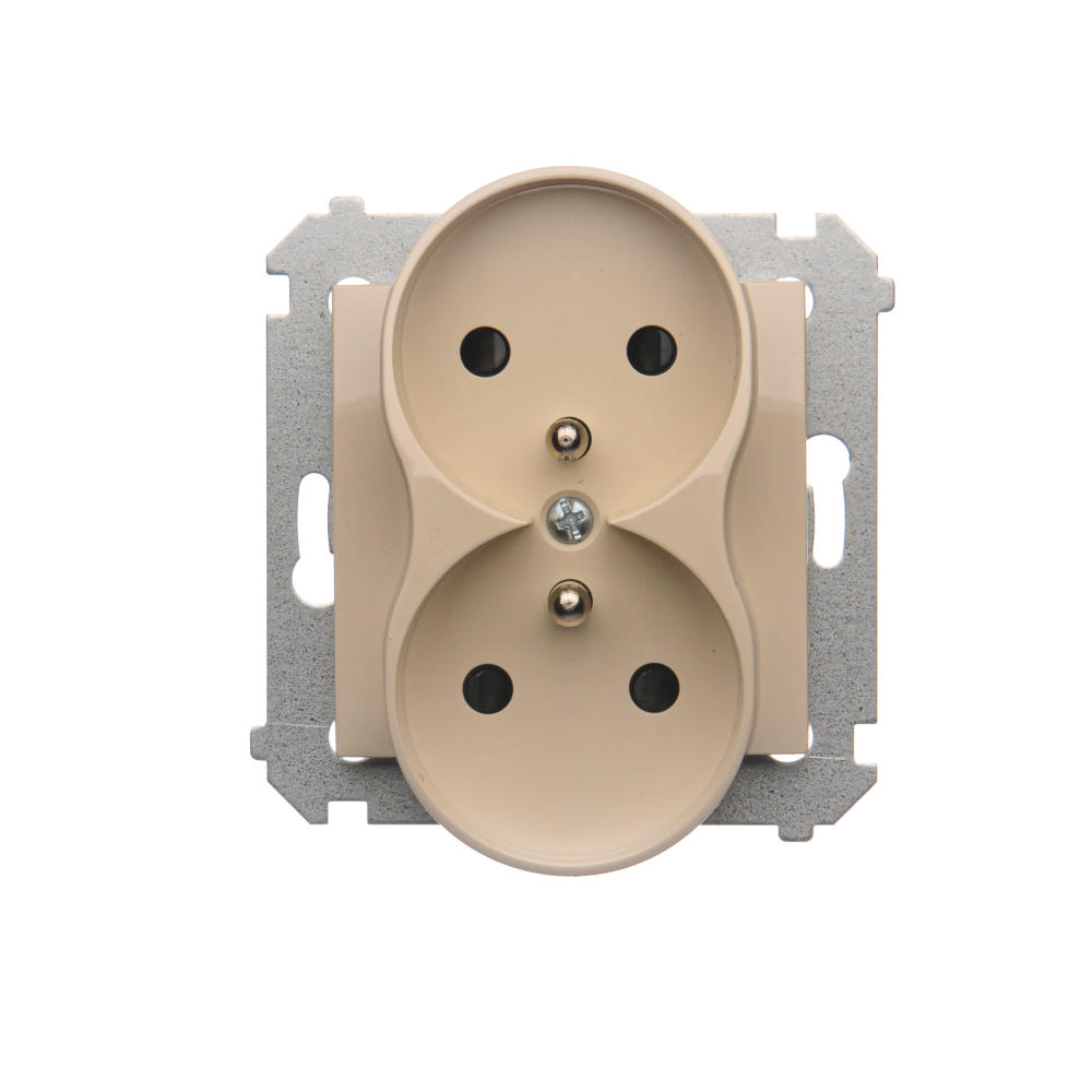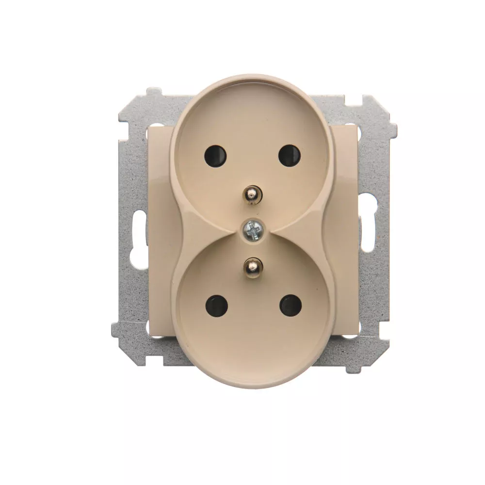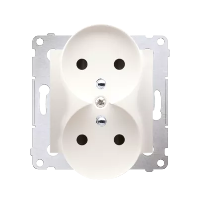 Simon 54 Nature WMDW-0021NM-041 Gniazdo wtyczkowe z uziemieniem z przesłonami podwójne do ramek NATURE (moduł) 16A, 250V~, zaciski śrubowe; kremowy