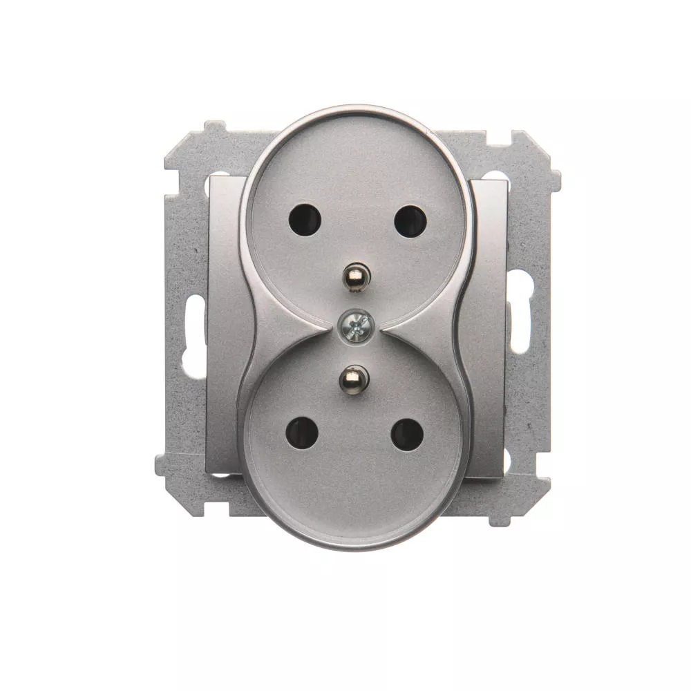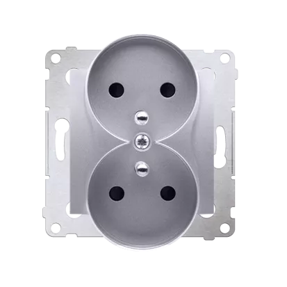 Simon 54 Nature WMDW-0021NM-043 Gniazdo wtyczkowe z uziemieniem z przesłonami podwójne do ramek NATURE (moduł) 16A, 250V~, zaciski śrubowe; srebrny mat