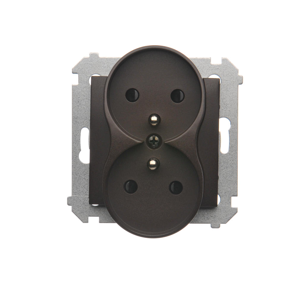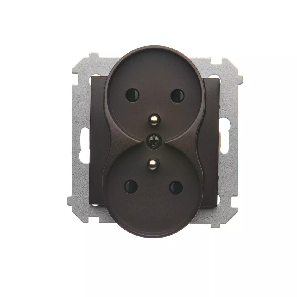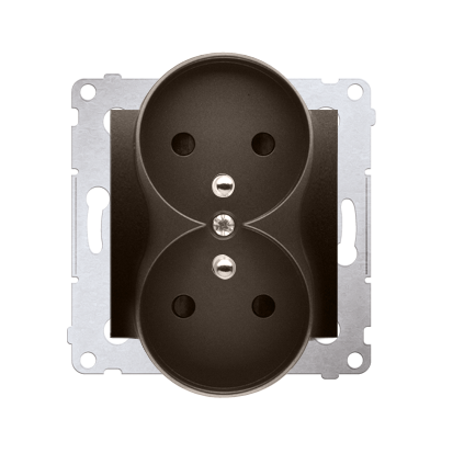 Simon 54 Nature WMDW-0021NM-046 Gniazdo wtyczkowe z uziemieniem z przesłonami podwójne do ramek NATURE (moduł) 16A, 250V~, zaciski śrubowe; brąz mat