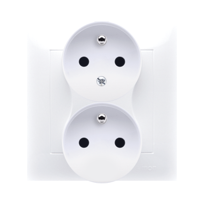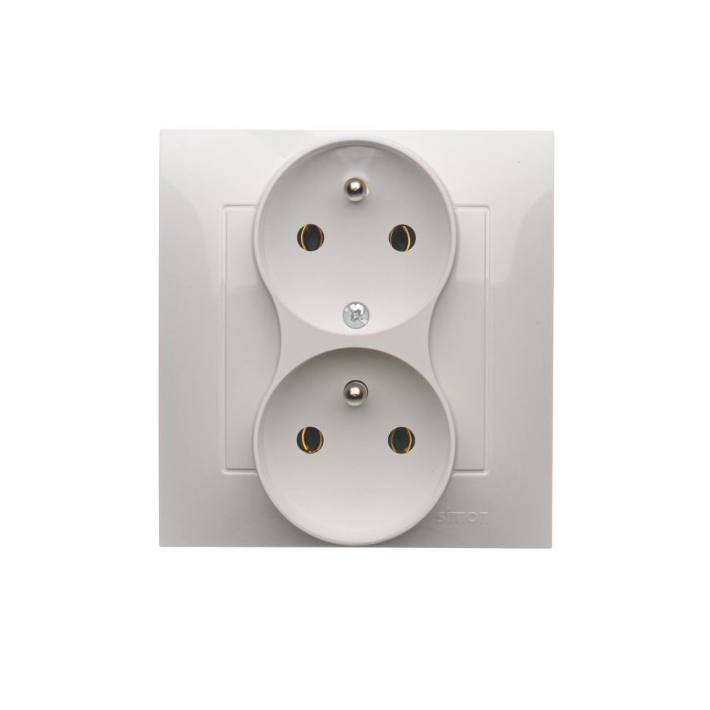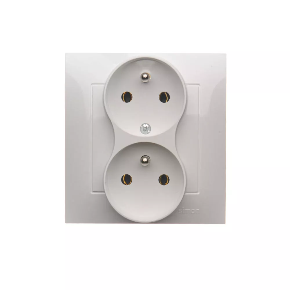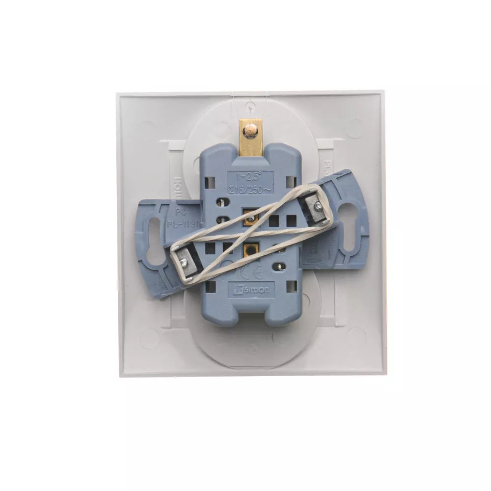 Simon 54 WMDW-00210Y-011 Gniazdo wtyczkowe z uziemieniem podwójne, z funkcją niezmienności faz, 16A, 250V~, zaciski śrubowe. Kompletne - nie do ramek; biały
