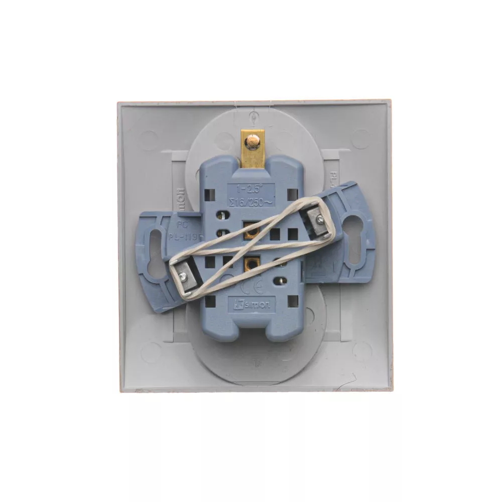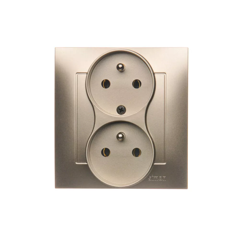 Simon 54 WMDW-00210Y-044 Gniazdo wtyczkowe z uziemieniem podwójne, z funkcją niezmienności faz, 16A, 250V~, zaciski śrubowe. Kompletne - nie do ramek; złoty mat