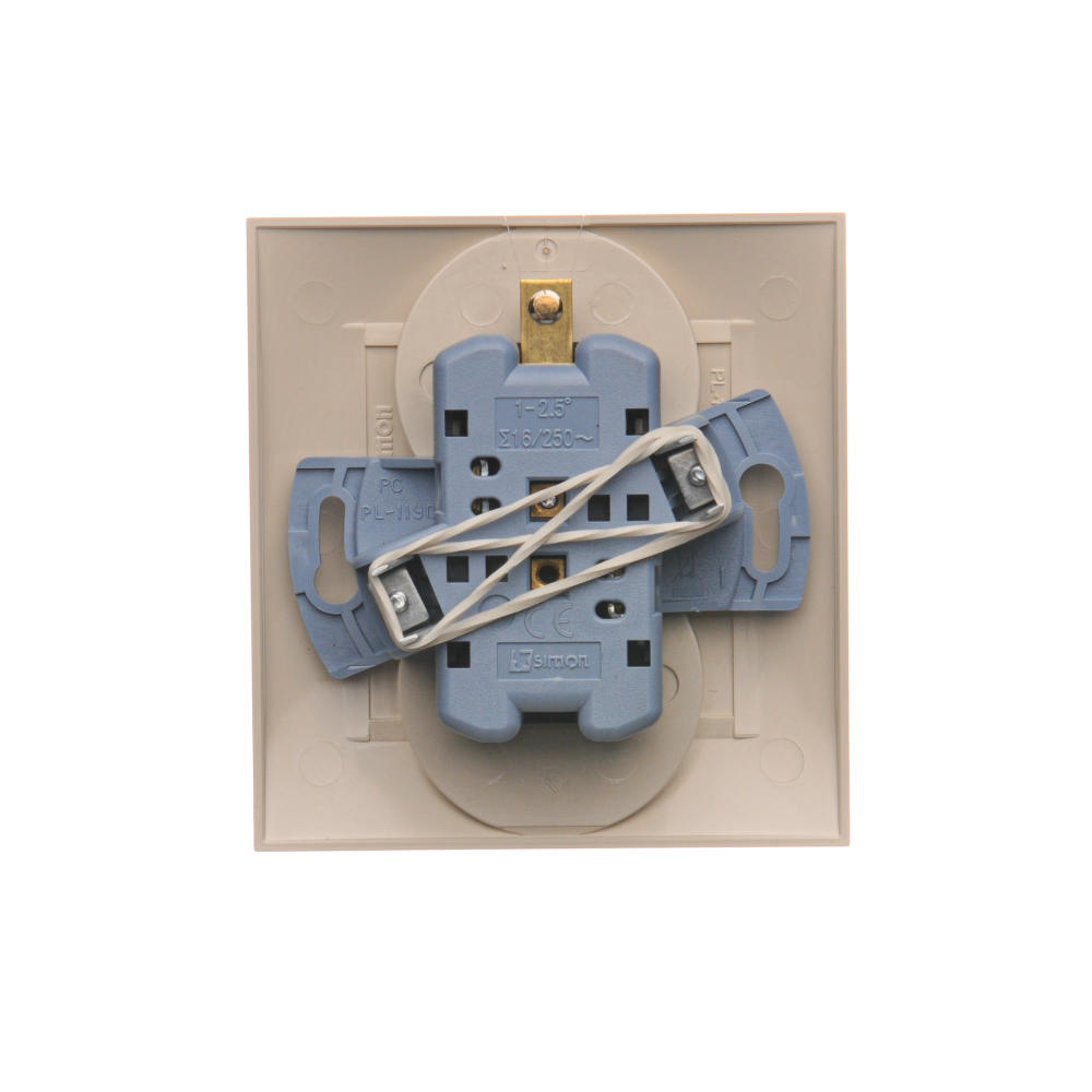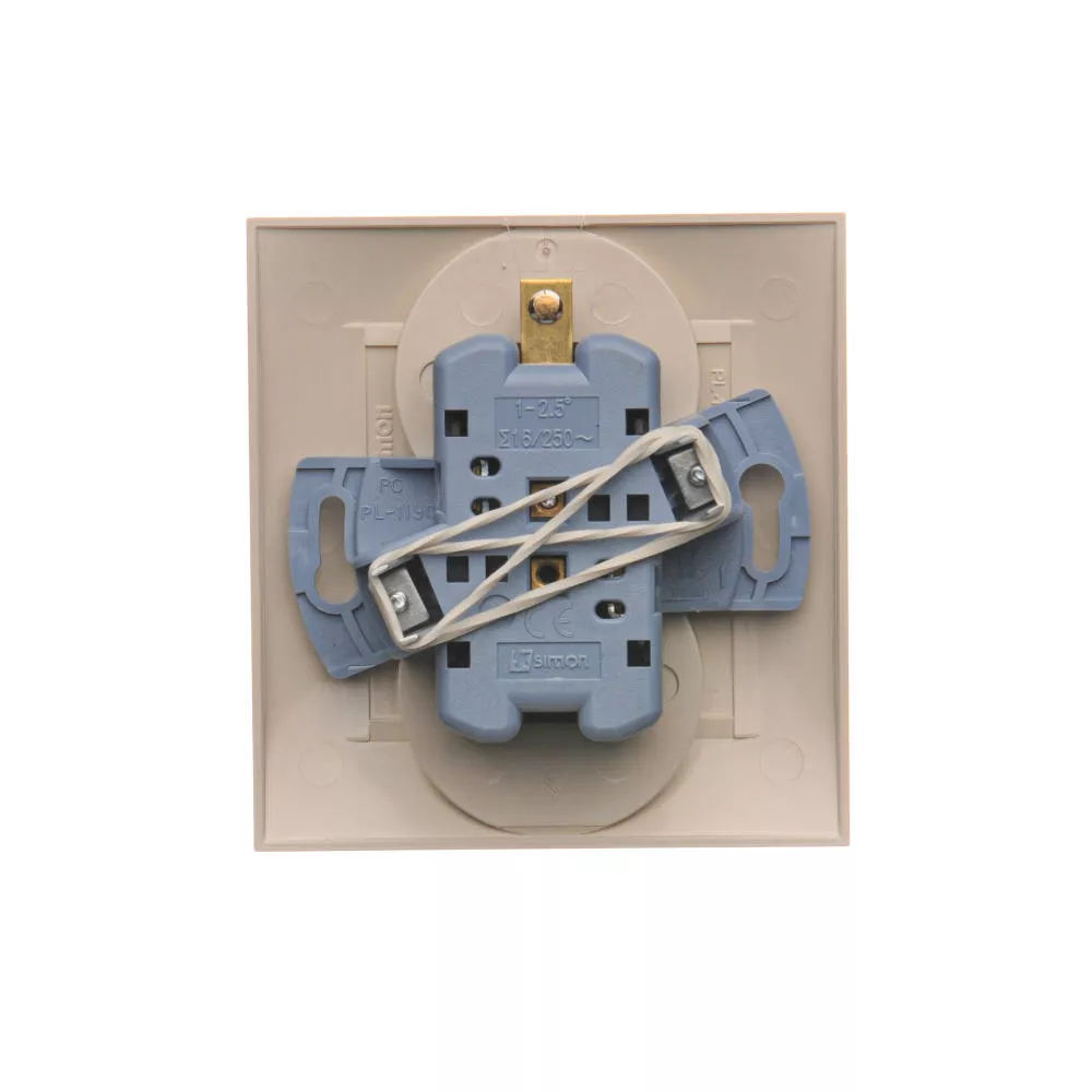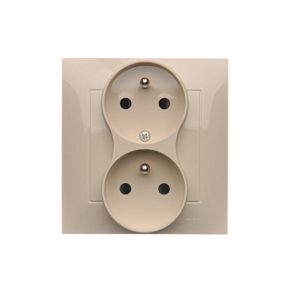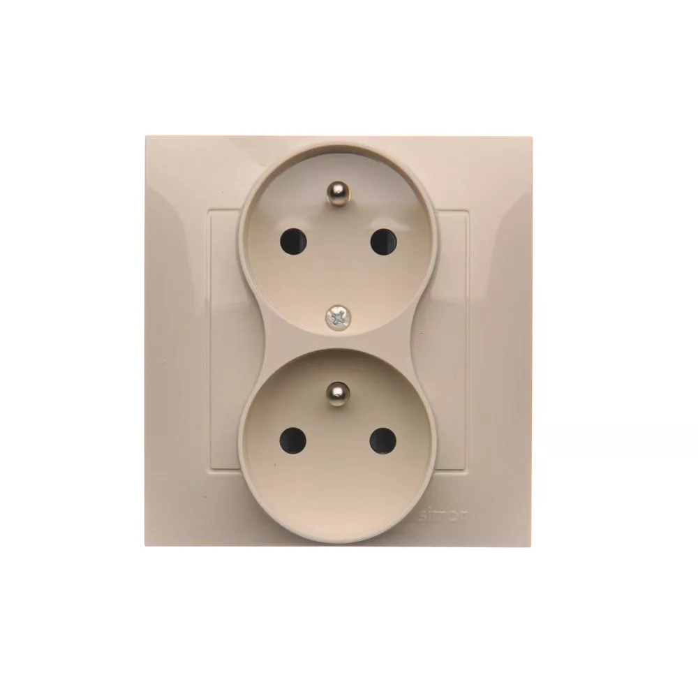 Simon 54 WMDW-00210Z-041 Gniazdo wtyczkowe z uziemieniem podwójne, z funkcją niezmienności faz, z przesłonami, 16A, 250V~, zaciski śrubowe. Kompletne - nie do ramek; kremowy