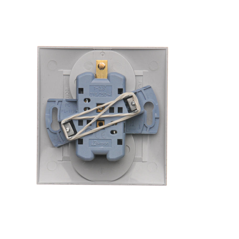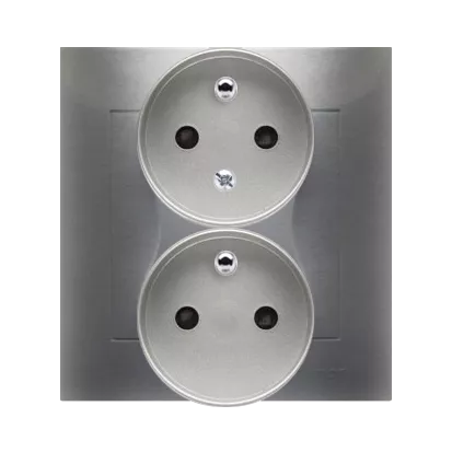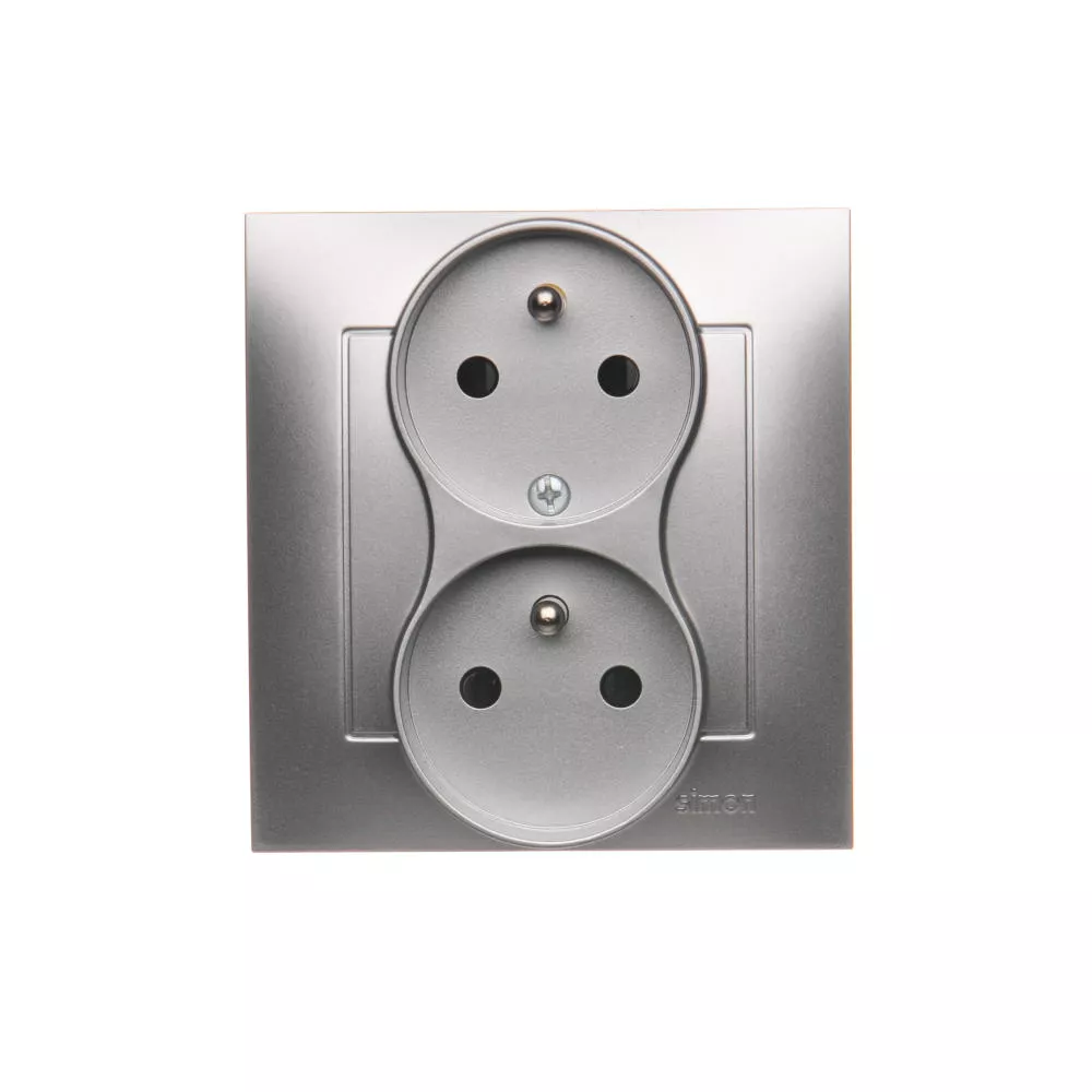 Simon 54 WMDW-00210Z-043 Gniazdo wtyczkowe z uziem. podwójne, z funkcją niezmienności faz, z przesłonami, 16A, 250V~, zac. śrubowe. Kompletne - nie do ramek; srebrny mat