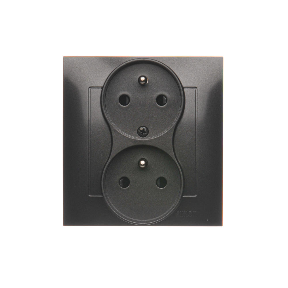 Simon 54 WMDW-00210Z-048 Gniazdo wtyczkowe z uziem. podwójne, z funkcją niezmienności faz, z przesłonami, 16A, 250V~, zac. śrubowe. Kompletne - nie do ramek; antracyt