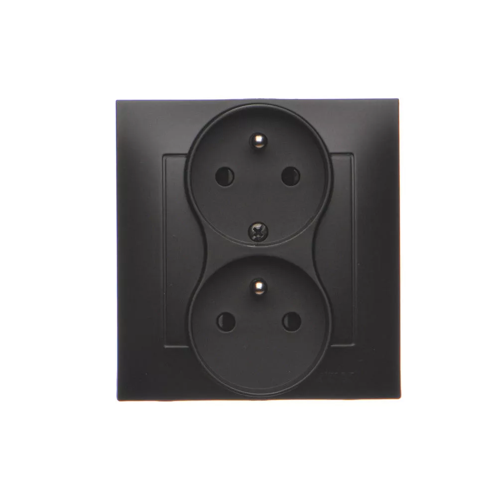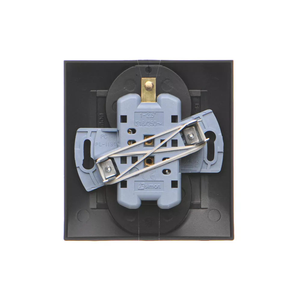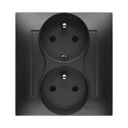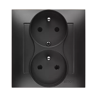 Simon 54 WMDW-00210Z-049 Gniazdo wtyczkowe z uziem. podwójne, z funkcją niezmienności faz, z przesłonami, 16A, 250V~, zac. śrubowe. Kompletne - nie do ramek; czarny