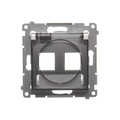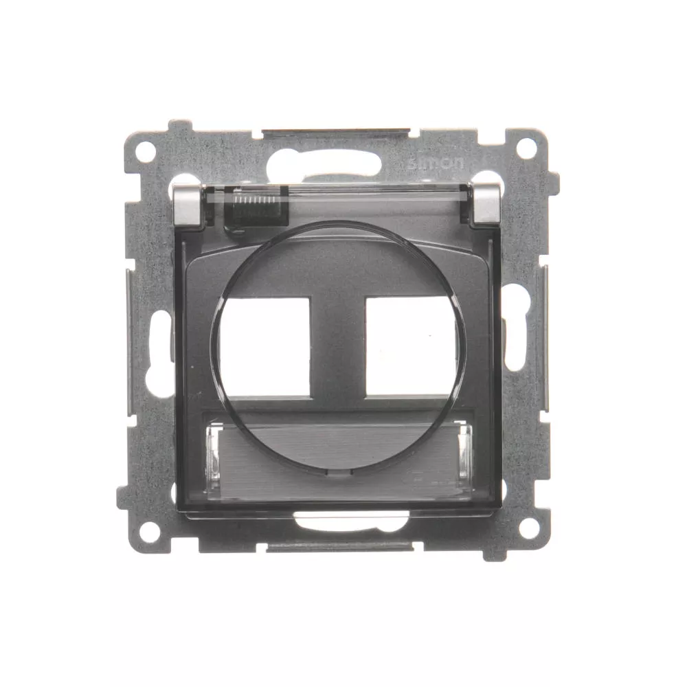 Simon 54 WMDA-P92xx1-043 Pokrywa gniazd teleinformatycznych IP44 na Keystone podwójna z polem opisowym, klapka transp.; srebrny mat Wymagana uszczelka IP44 do ramki