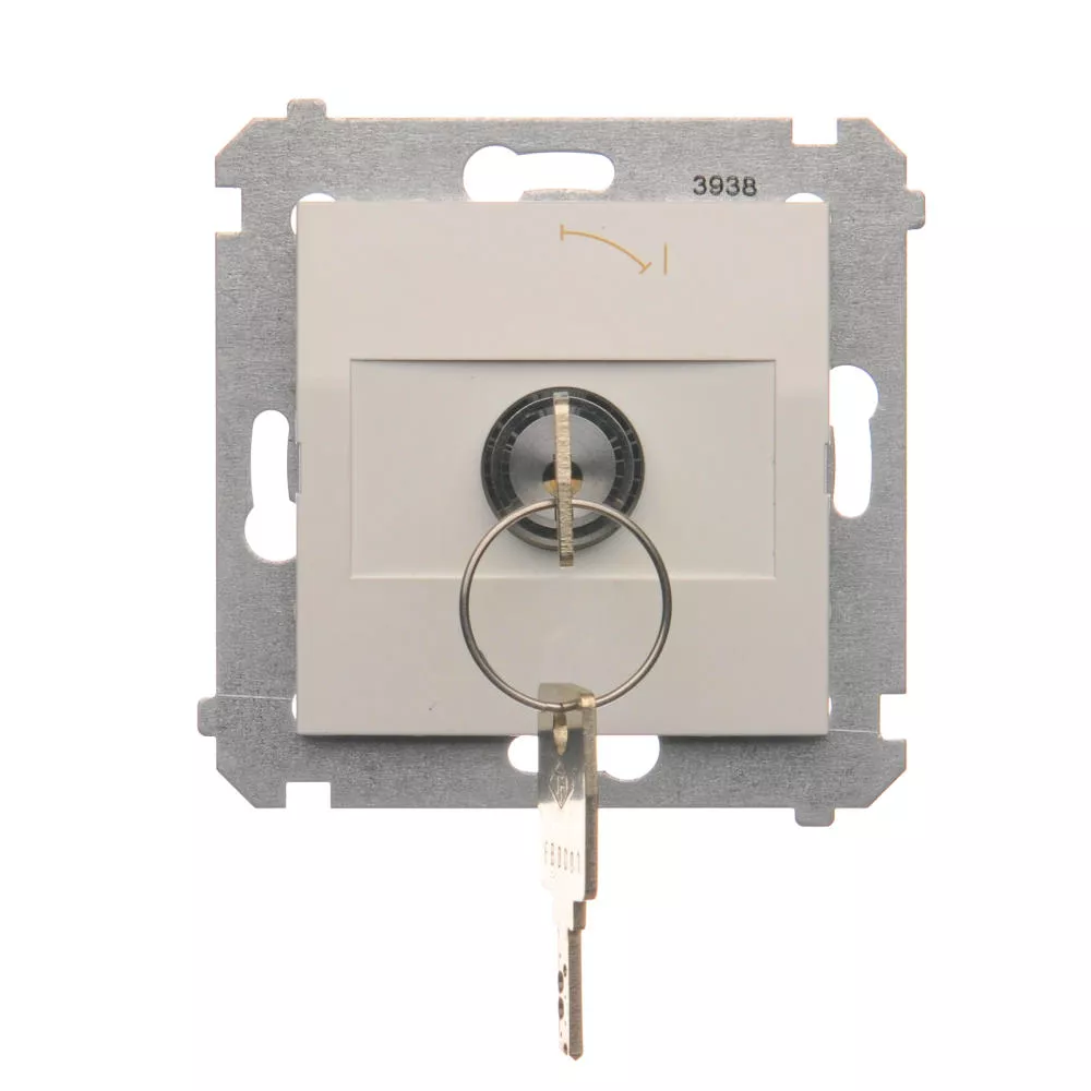 Simon 54 WMDL-0K01Px-011 Łącznik na kluczyk chwilowy – przycisk (moduł) 2 pozycyjny „0-I” styk N/O, 5 A, 250~. Możliwość wyjęcia klucza tylko w pozycji 0; biały