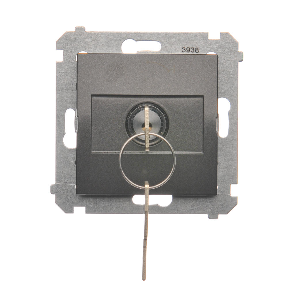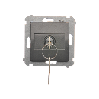 Simon 54 WMDL-0K01Px-048 Łącznik na kluczyk chwilowy – przycisk (moduł) 2 pozycyjny „0-I” styk N/O, 5 A, 250~. Możliwość wyjęcia klucza tylko w pozycji 0; antracyt