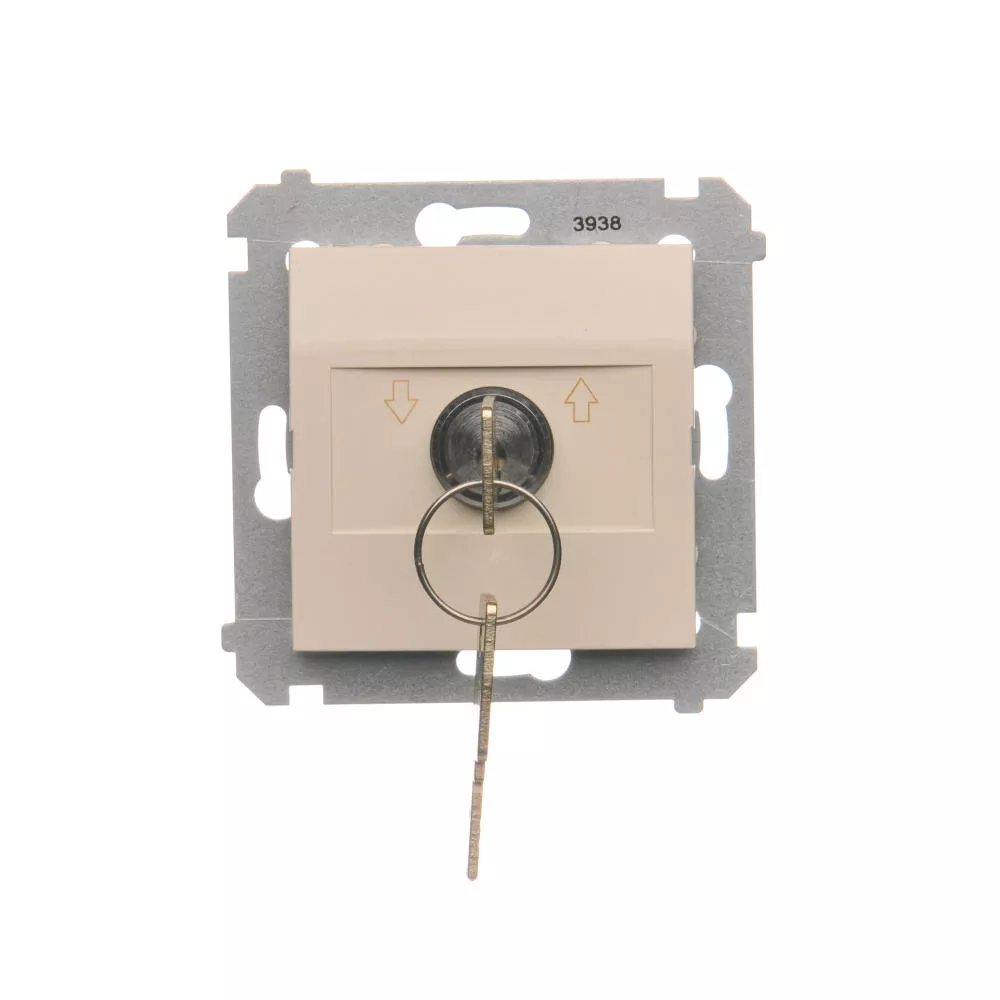 Simon 54 WMDL-0K04Px-041 Łącznik na kluczyk roletowy chwilowy –przycisk (moduł) 3 poz. „I-0-II" 2 styki N/O, 5A, 250~. Możliwość wyjęcia klucza tylko w pozycji 0; kremowy