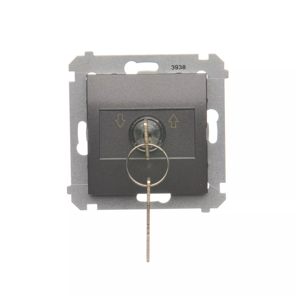 Simon 54 WMDL-0K04Px-048 Łącznik na kluczyk roletowy chwilowy –przycisk (moduł) 3 poz. „I-0-II" 2 styki N/O, 5A, 250~. Możliwość wyjęcia klucza tylko w pozycji 0; antracyt
