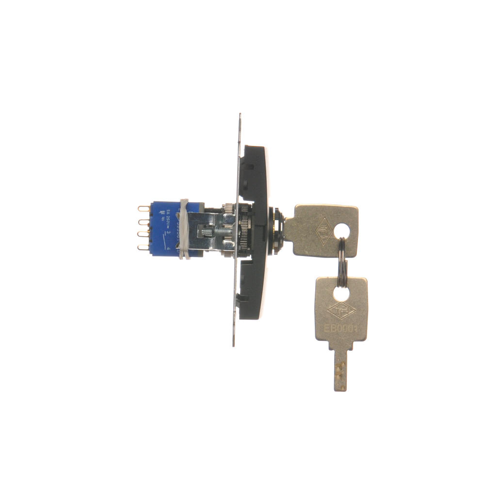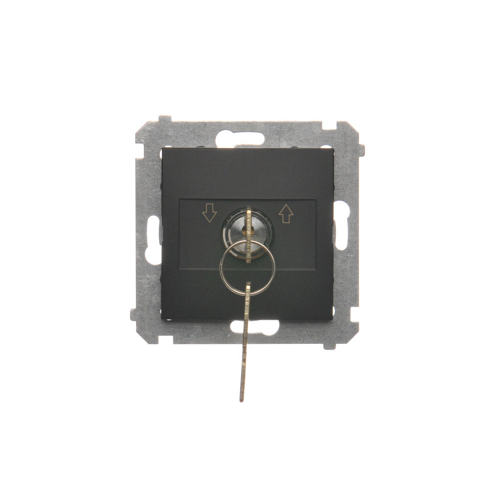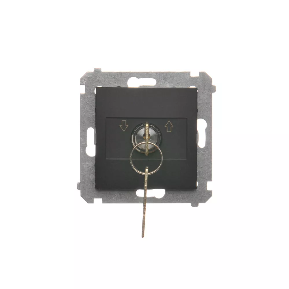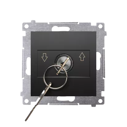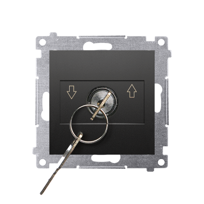Simon 54 WMDL-0K04Px-049 Łącznik na kluczyk roletowy chwilowy –przycisk (moduł) 3 poz. „I-0-II" 2 styki N/O, 5A, 250~. Możliwość wyjęcia klucza tylko w pozycji 0; czarny