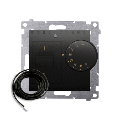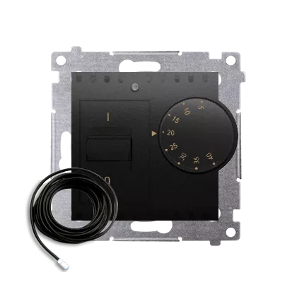 Simon 54 WMDR-01xxxx-049 Regulator temperatury z czujnikiem zewnętrznym (moduł) 16(2) A, 230V~. W komplecie czujnik zewnętrzny (sonda). Montaż na wkręty; czarny