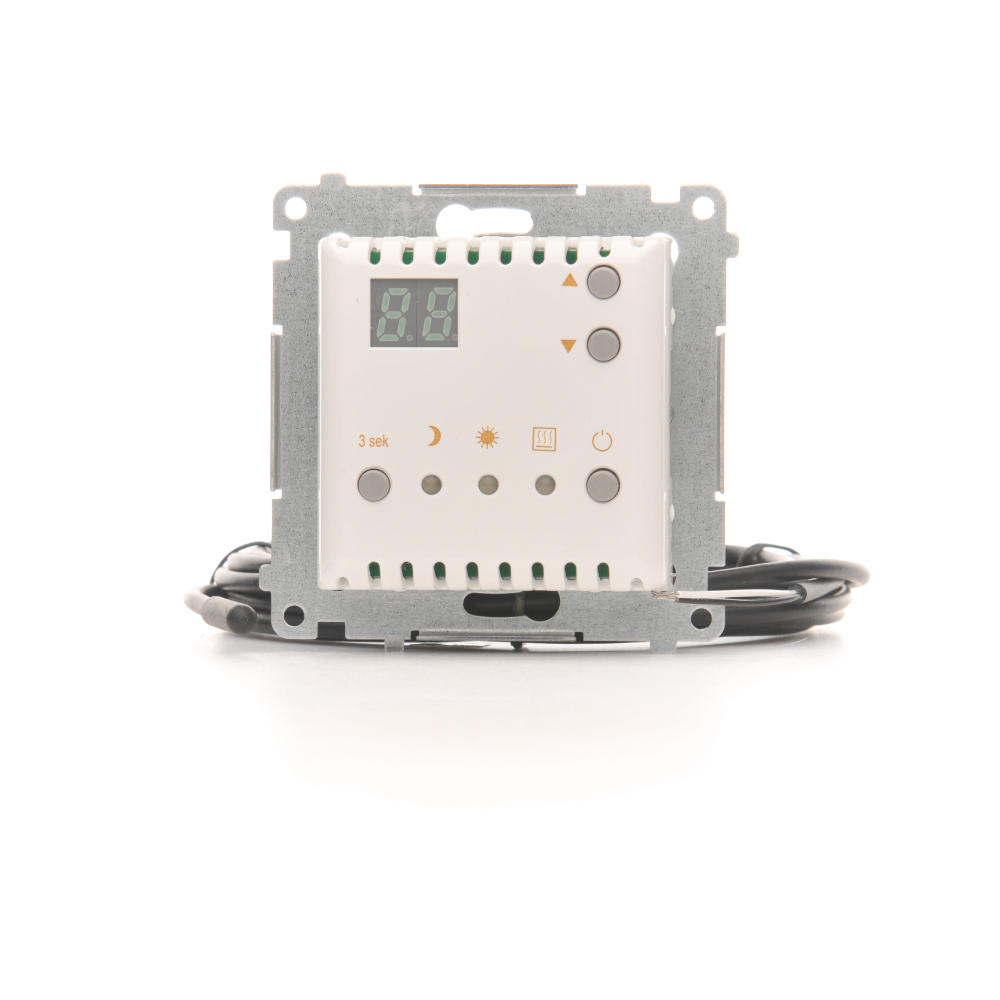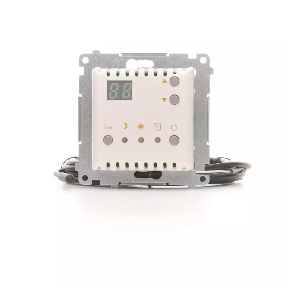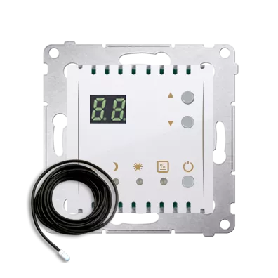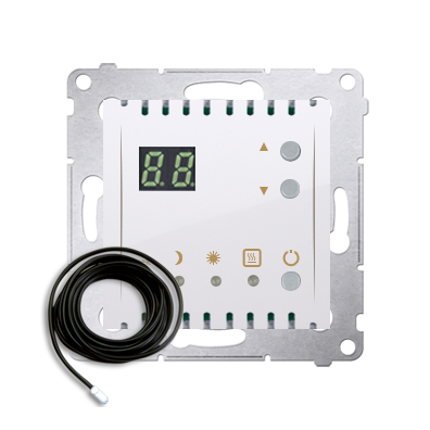 Simon 54 WMDR-14xxx1-011 Regulator temperatury z wyświetlaczem z czujnikiem zewnętrznym (moduł) 16(2) A, 230V~; biały W komplecie czujnik zewnętrzny (sonda)