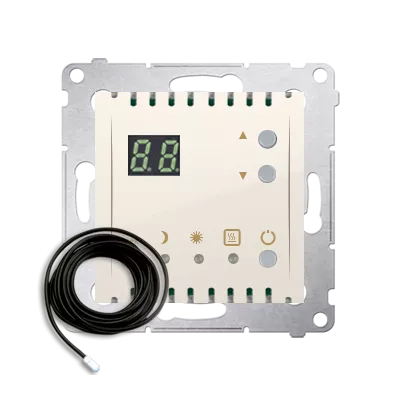 Simon 54 WMDR-14xxx1-041 Regulator temperatury z wyświetlaczem z czujnikiem zewnętrznym (moduł) 16(2) A, 230V~; kremowy W komplecie czujnik zewnętrzny (sonda)