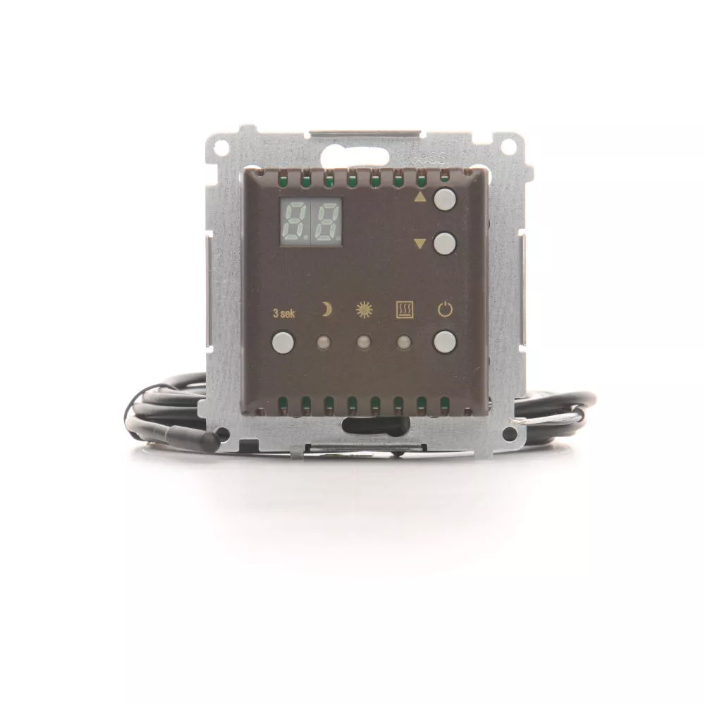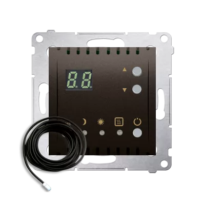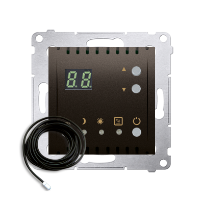 Simon 54 WMDR-14xxx1-046 Regulator temperatury z wyświetlaczem z czujnikiem zewnętrznym (moduł) 16(2) A, 230V~; brąz mat W komplecie czujnik zewnętrzny (sonda)