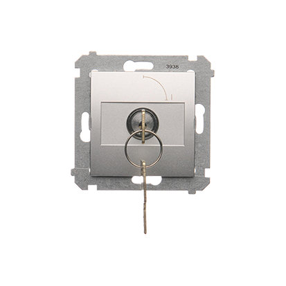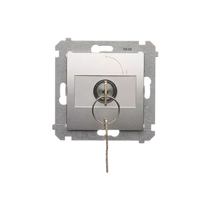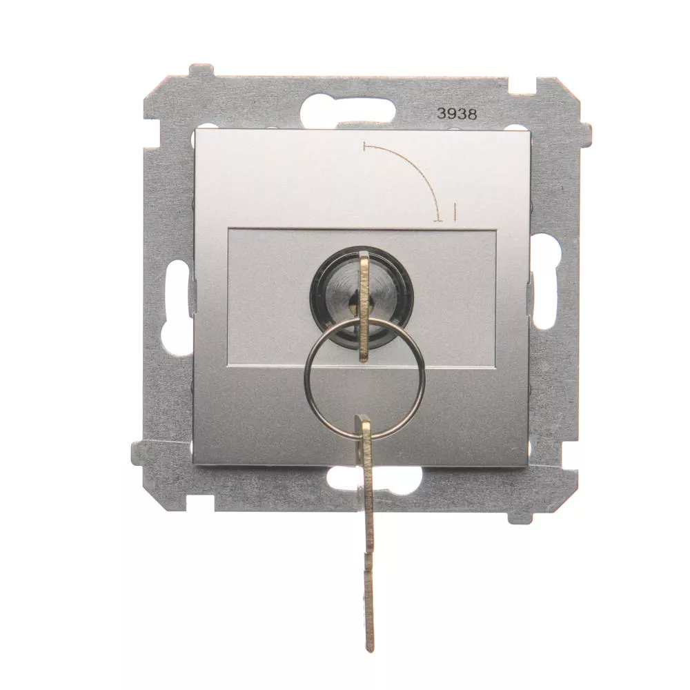 Simon 54 WMDL-0K01xx-043 Łącznik na kluczyk jednobiegunowy (moduł) 2 pozycyjny „0-I” styk N/O, 5 A, 250~. Możliwość wyjęcia klucza w każdej pozycji; srebrny mat
