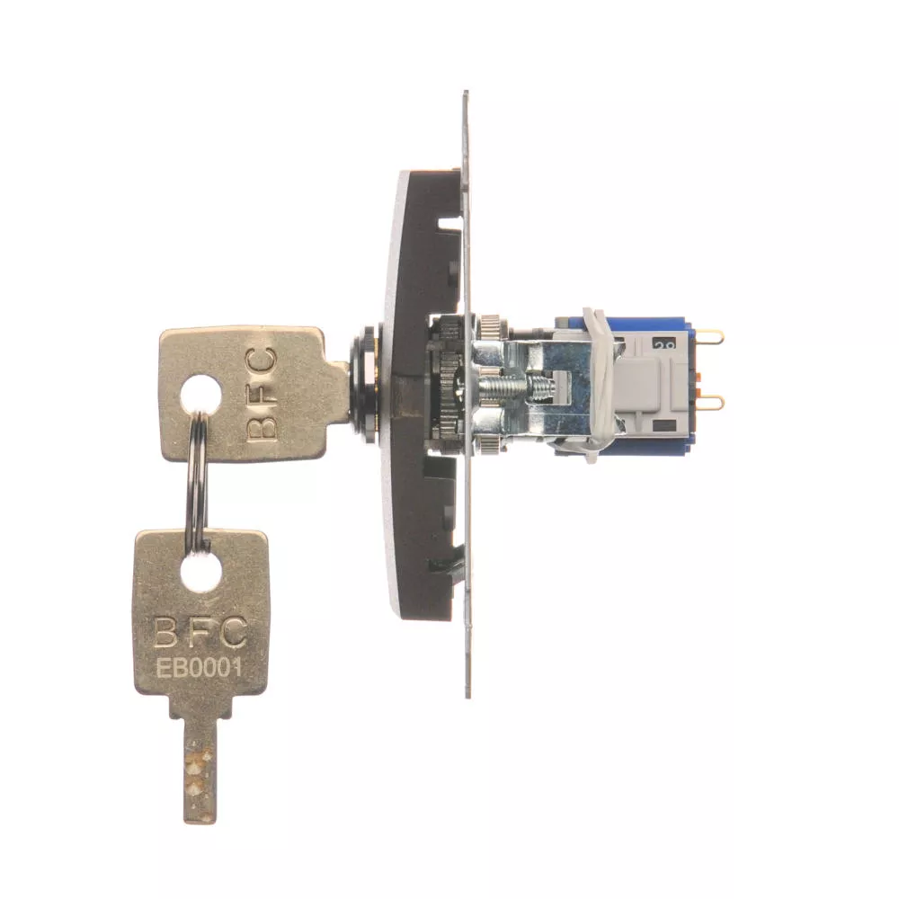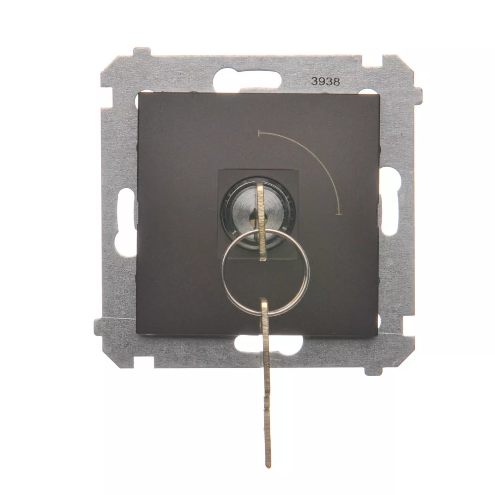 Simon 54 WMDL-0K01xx-046 Łącznik na kluczyk jednobiegunowy (moduł) 2 pozycyjny „0-I” styk N/O, 5 A, 250~. Możliwość wyjęcia klucza w każdej pozycji; brąz mat