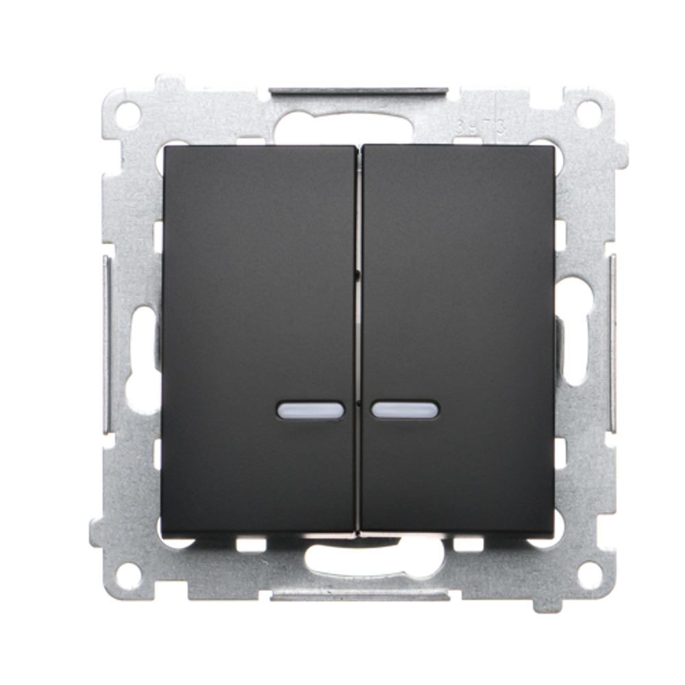 Simon 54 WMDL-551x2x-049 Łącznik świecznikowy z podświetleniem LED i do wersji IP44 (moduł) 16AX, 250V~, zaciski śrubowe; czarny Posiada wkładkę DU1W