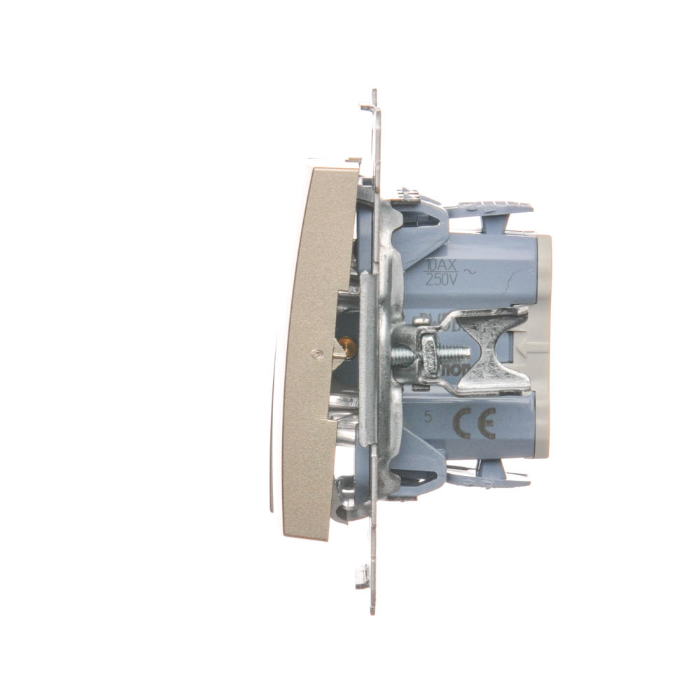 Simon 54 WMDL-550xxx-044 Łącznik świecznikowy do wersji IP44 (moduł) 10AX, 250V~, szybkozłącza; złoty mat Posiada wkładkę uszczelniającą pod klawisze DU1W