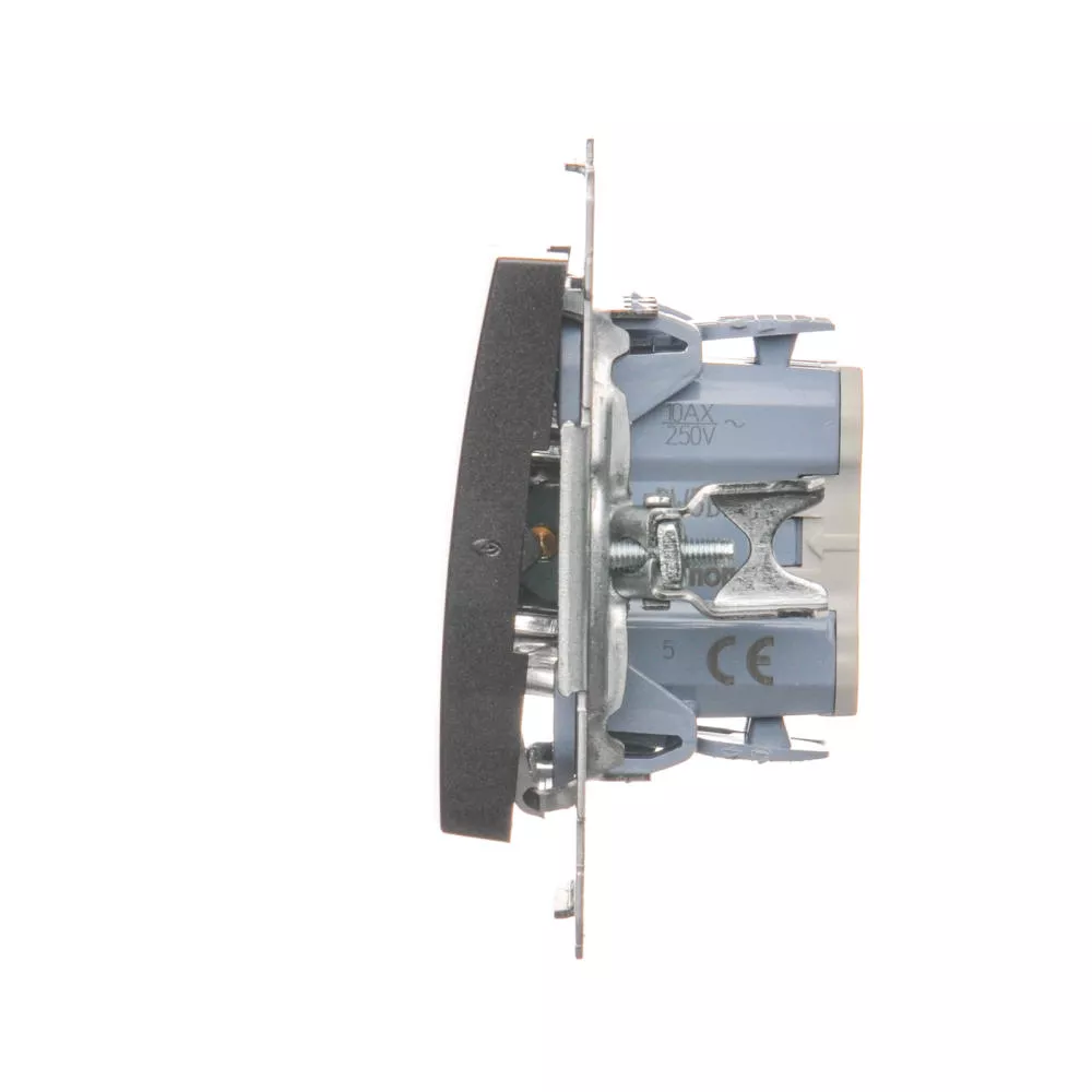 Simon 54 WMDL-550xxx-048 Łącznik świecznikowy do wersji IP44 (moduł) 10AX, 250V~, szybkozłącza; antracyt Posiada wkładkę uszczelniającą pod klawisze DU1W
