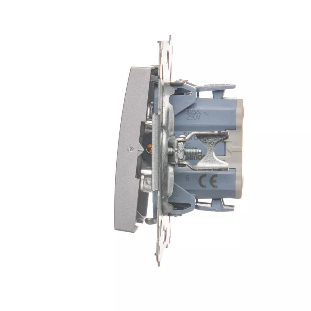 Simon 54 WMDL-0600xx-043 Łącznik schodowy bez piktogramu (moduł) 10AX, 250V~, szybkozłącza; srebrny mat
