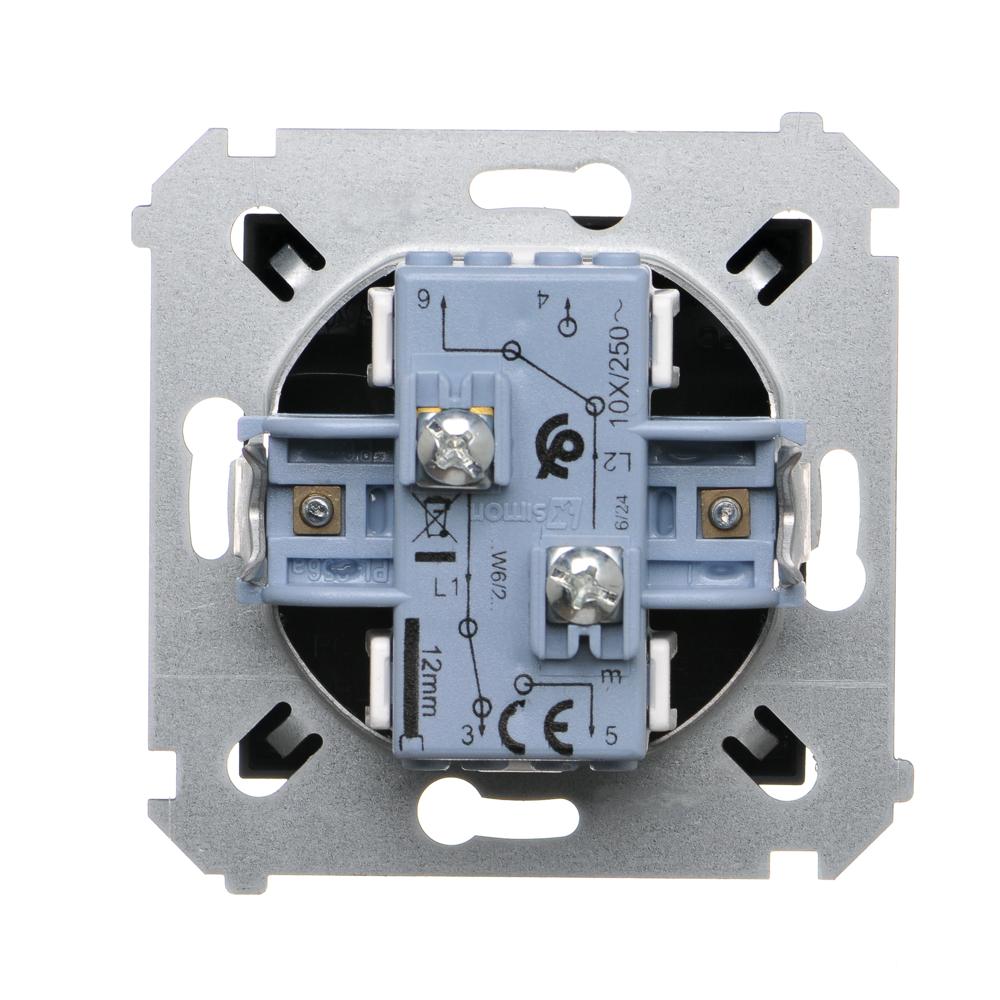 Simon 54 WMDL-06020x-049 Łącznik schodowy podwójny bez piktogramu (moduł) 10AX, 250V~, zaciski śrubowe; czarny