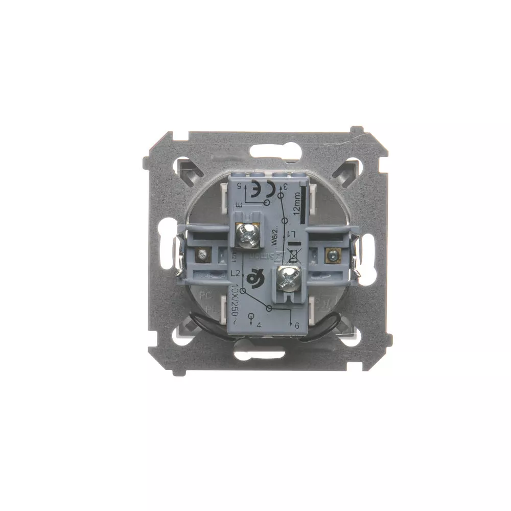 Simon 54 WMDL-06120x-043 Łącznik schodowy podwójny z podświetleniem bez piktogramu (moduł) 10AX, 250V~, zaciski śrubowe; srebrny mat