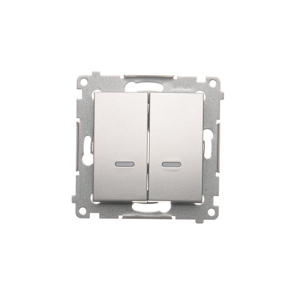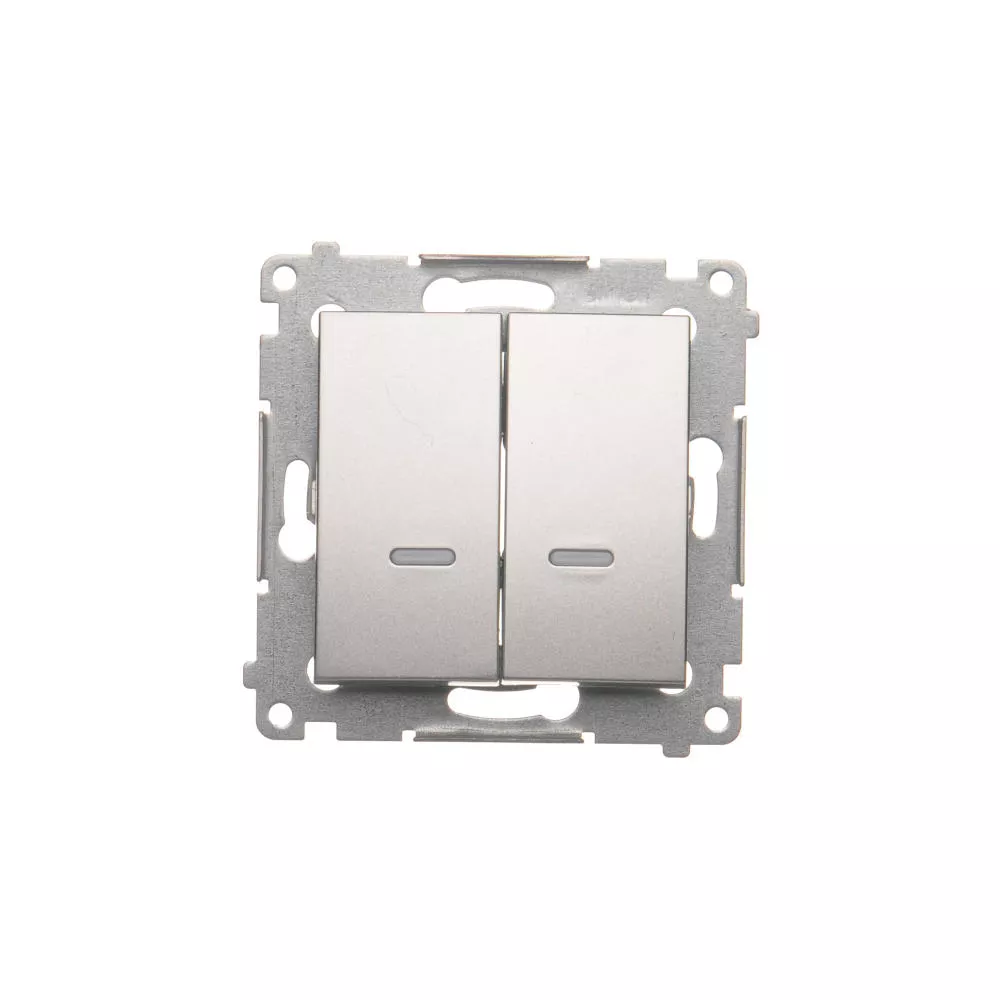 Simon 54 WMDL-07120x-043 Łącznik krzyżowy podwójny z podświetleniem bez piktogramu (moduł) 10AX, 250V~, szybkozłącza; srebrny mat