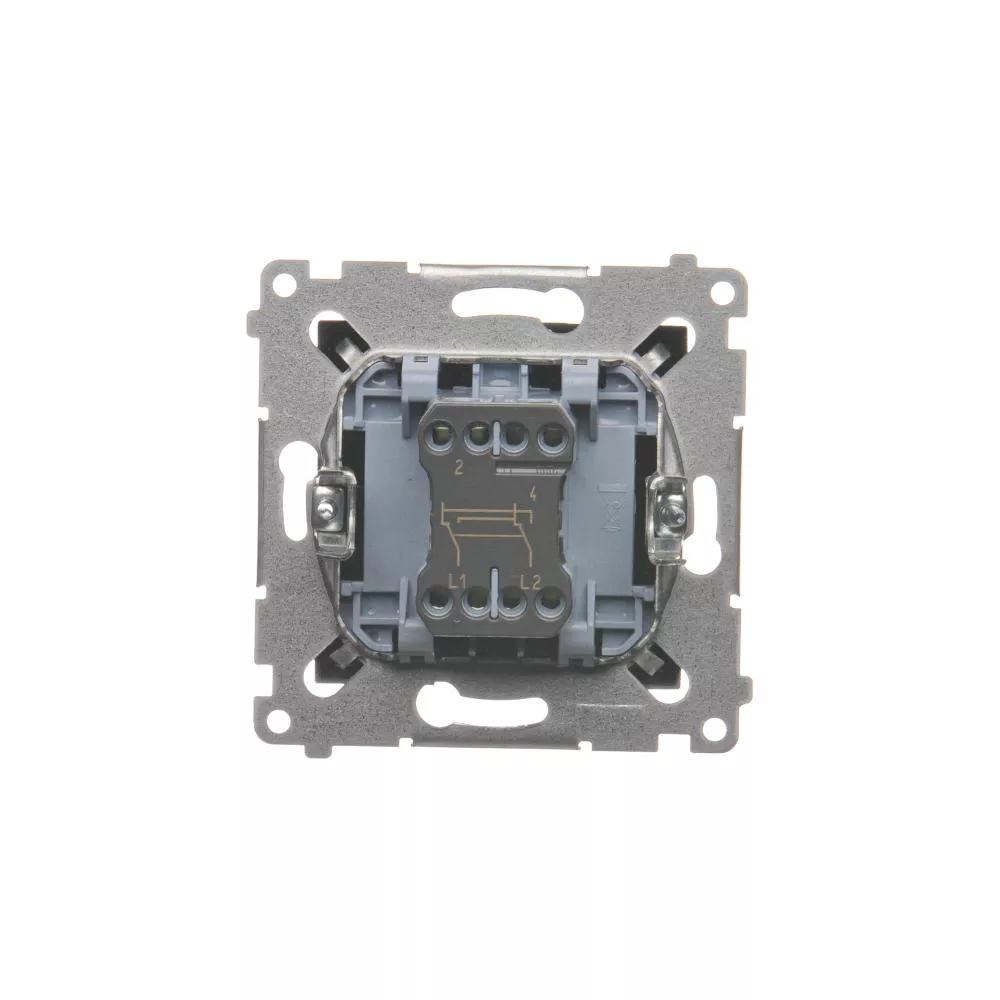 bez piktogramu Kolor antracyt, metalizowany Typ produktu moduł Prąd znamionowy świetlówkowy 16AX Napięcie znamionowe 250V Rodzaj podłączenia / Typ zacisku zaciski śrubowe Stopień ochrony IP IP20/IP44 Uwagi Do uzyskania klasy bryzgoszczelności IP44 zastosować uszczelkę ramki Podświetlenie opcjonalne,