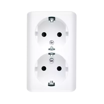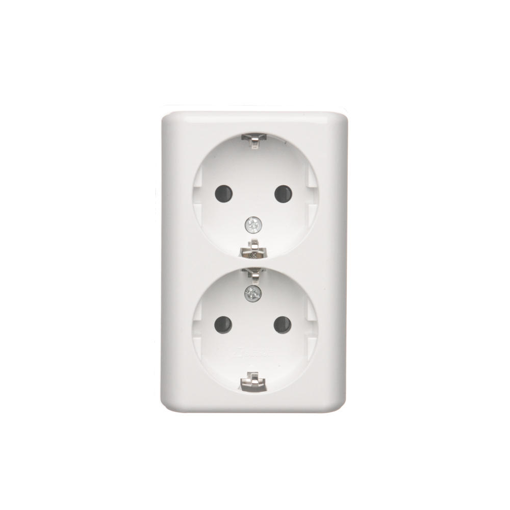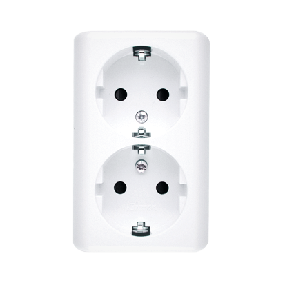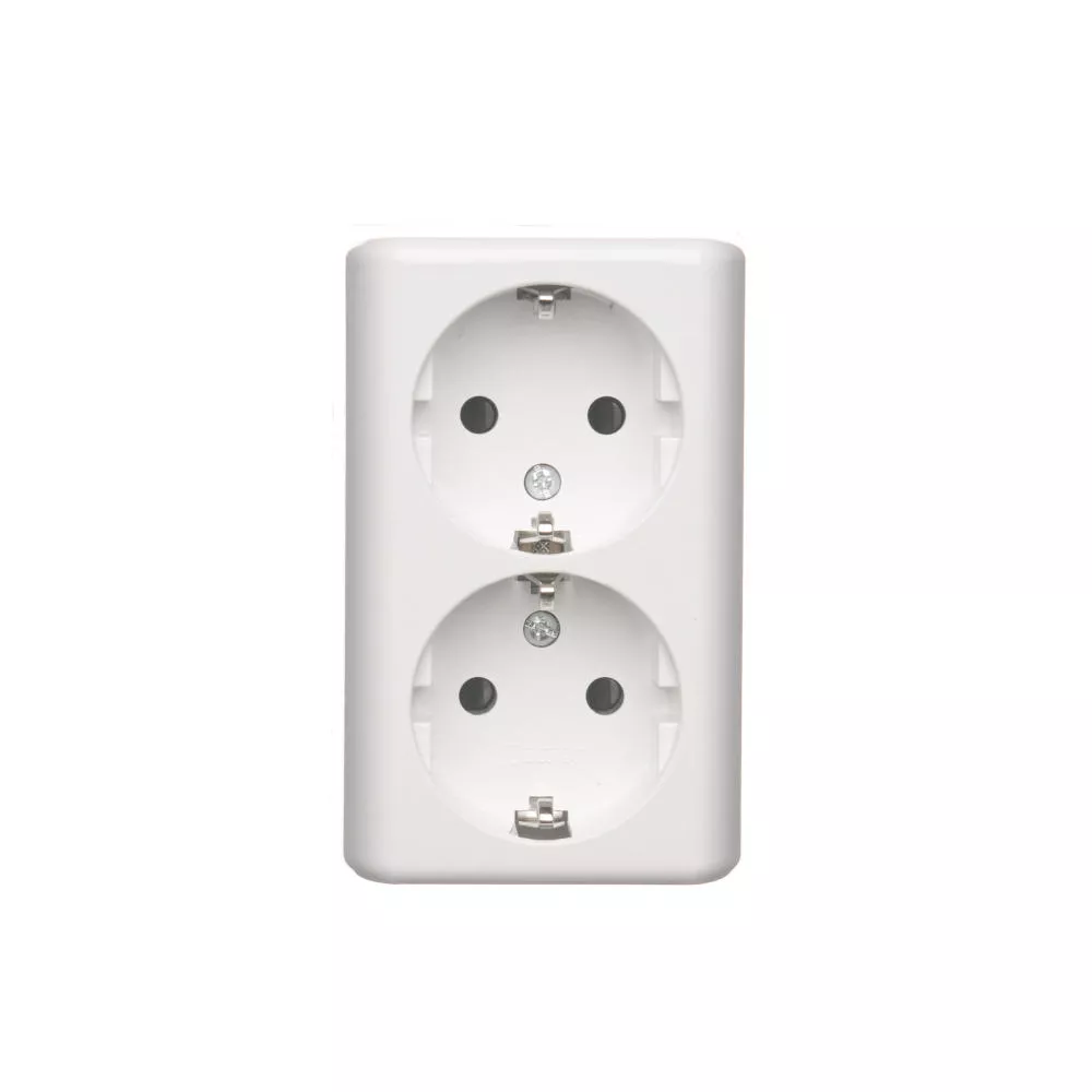 Simon 54 WMEW-22211N-101 Gniazdo podwójne Schuko natynkowe z przesłonami torów prądowych wersja skandynawska 16A, 250V~, zaciski śrubowe; biały