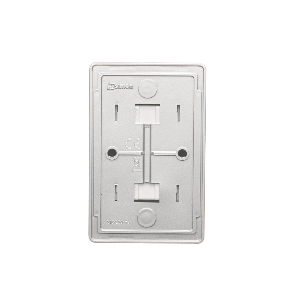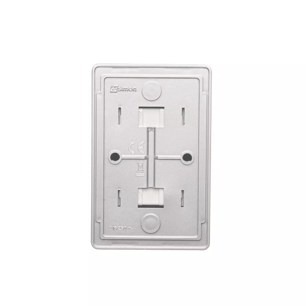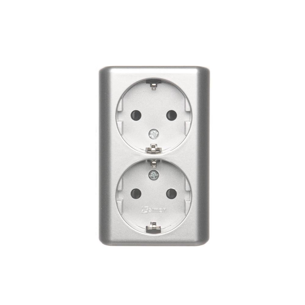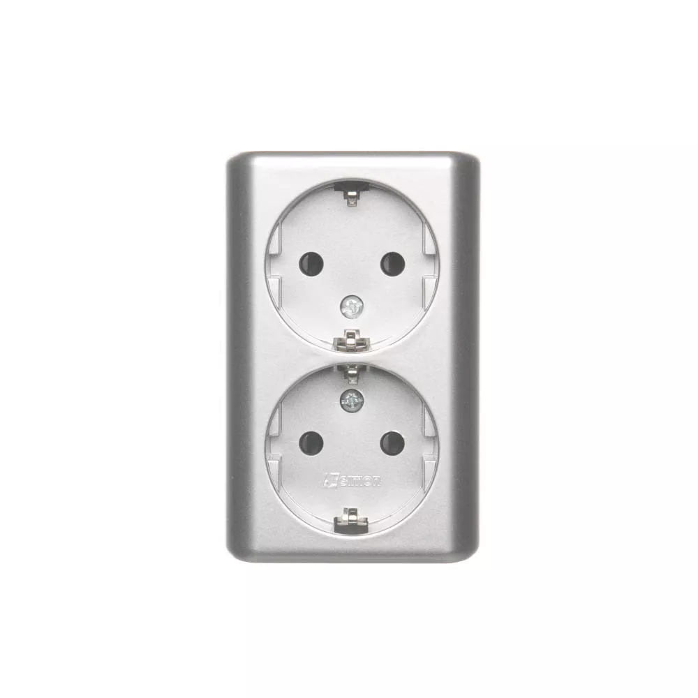 Simon 54 WMEW-22211N-043 Gniazdo podwójne Schuko natynkowe z przesłonami torów prądowych wersja skandynawska 16A, 250V~, zaciski śrubowe; srebrny mat