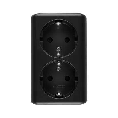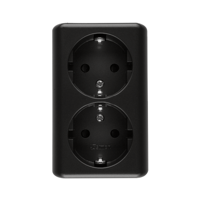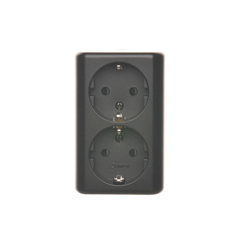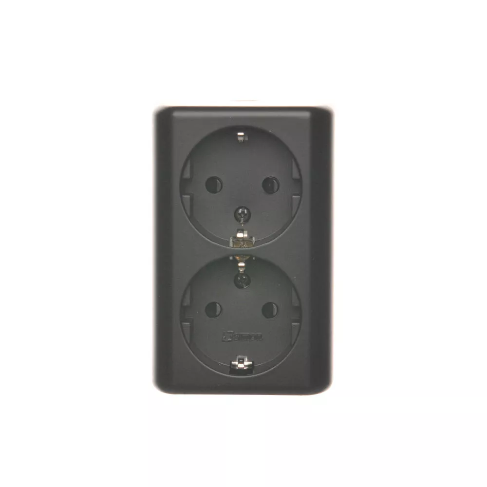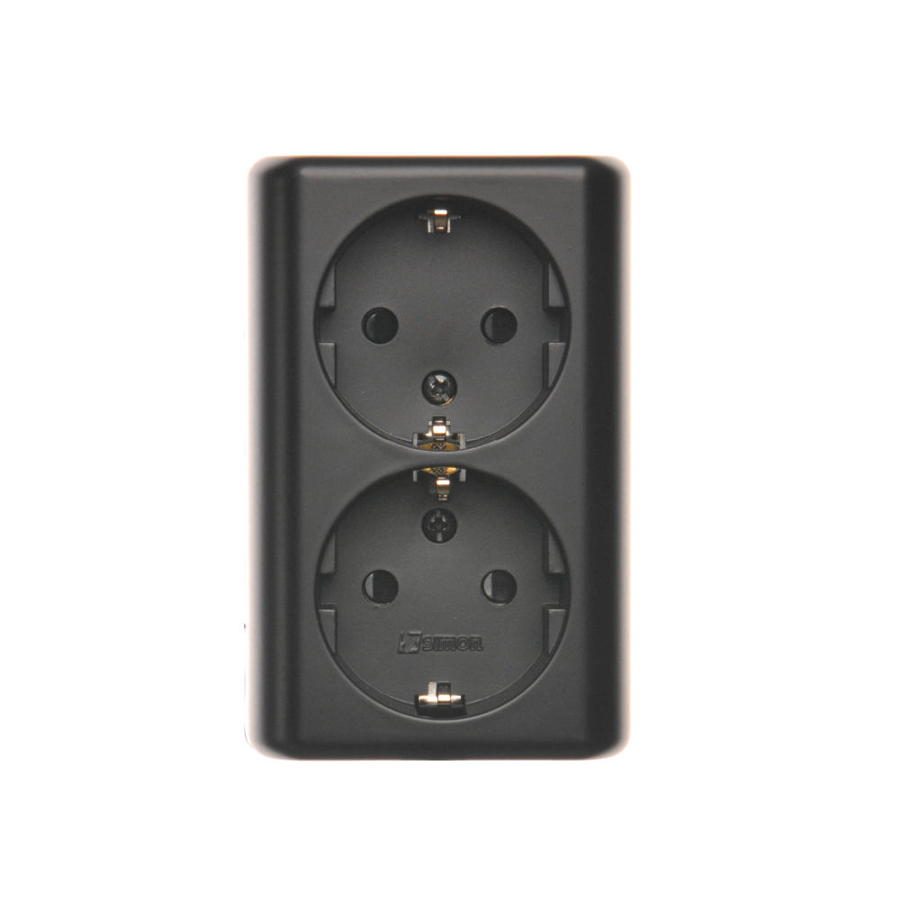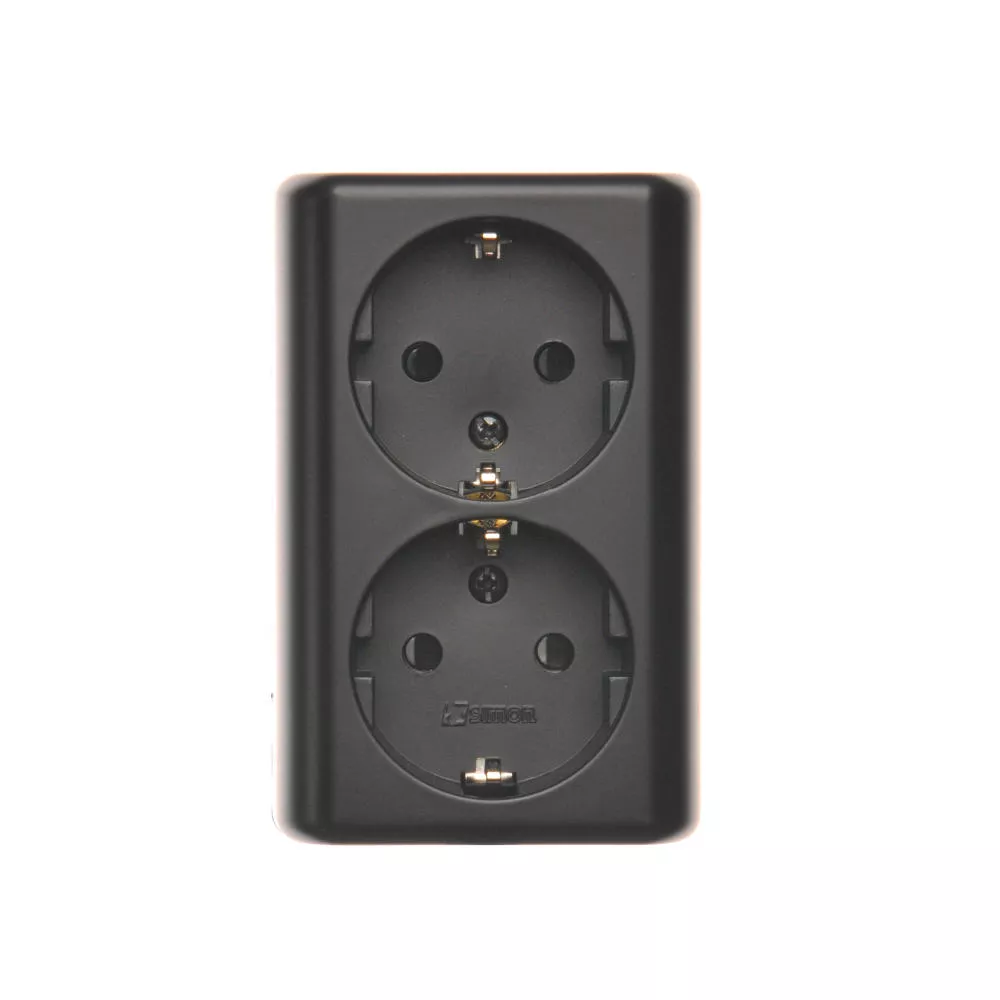 Simon 54 WMEW-22211N-049 Gniazdo podwójne Schuko natynkowe z przesłonami torów prądowych wersja skandynawska 16A, 250V~, zaciski śrubowe; czarny