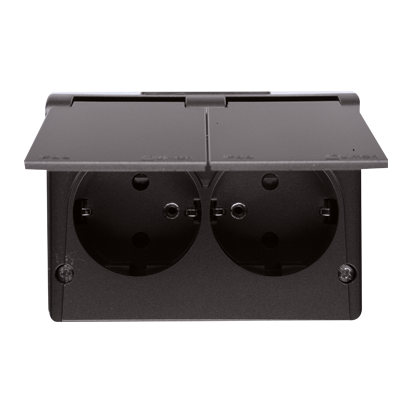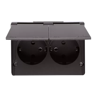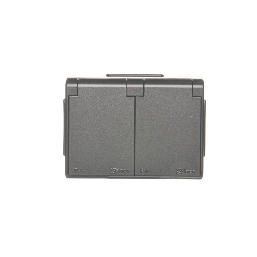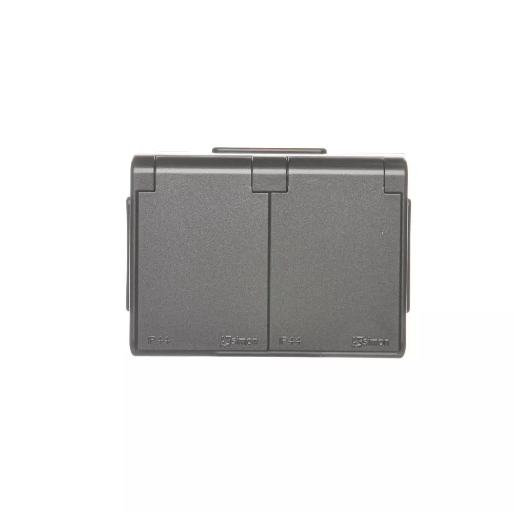 Simon 54 WMEW-32211x-048 Gniazdo podwójne Schuko natynkowe bryzgoszczelne IP44 z przesłonami wersja skandynawska 16A, 250V~, zaciski śrubowe; antracyt
