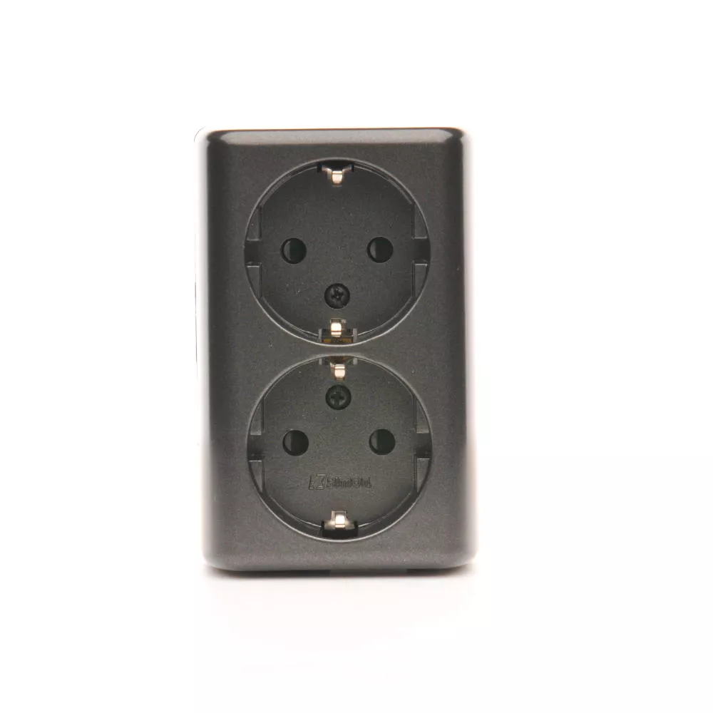 Simon 54 WMEW-22211C-048 Gniazdo podwójne Schuko natynkowe z przesłonami torów prądowych wersja skandynawska 16A, 250V~, szybkozłącza; antracyt