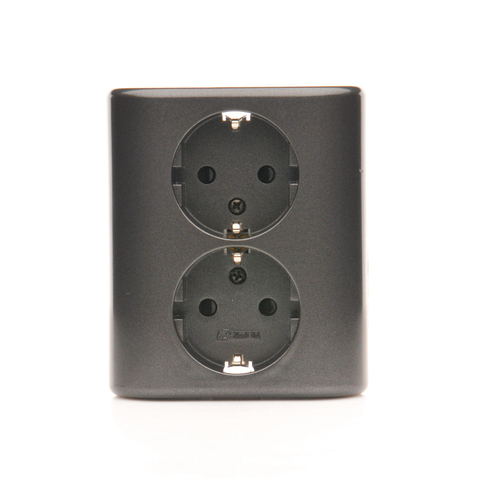 Simon 54 WMEW-12211C-048 Gniazdo podwójne Schuko podtynkowe z przesłonami torów prądowych wersja skandynawska 16A, 250V~, szybkozłącza; antracyt