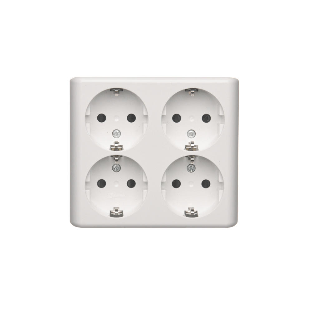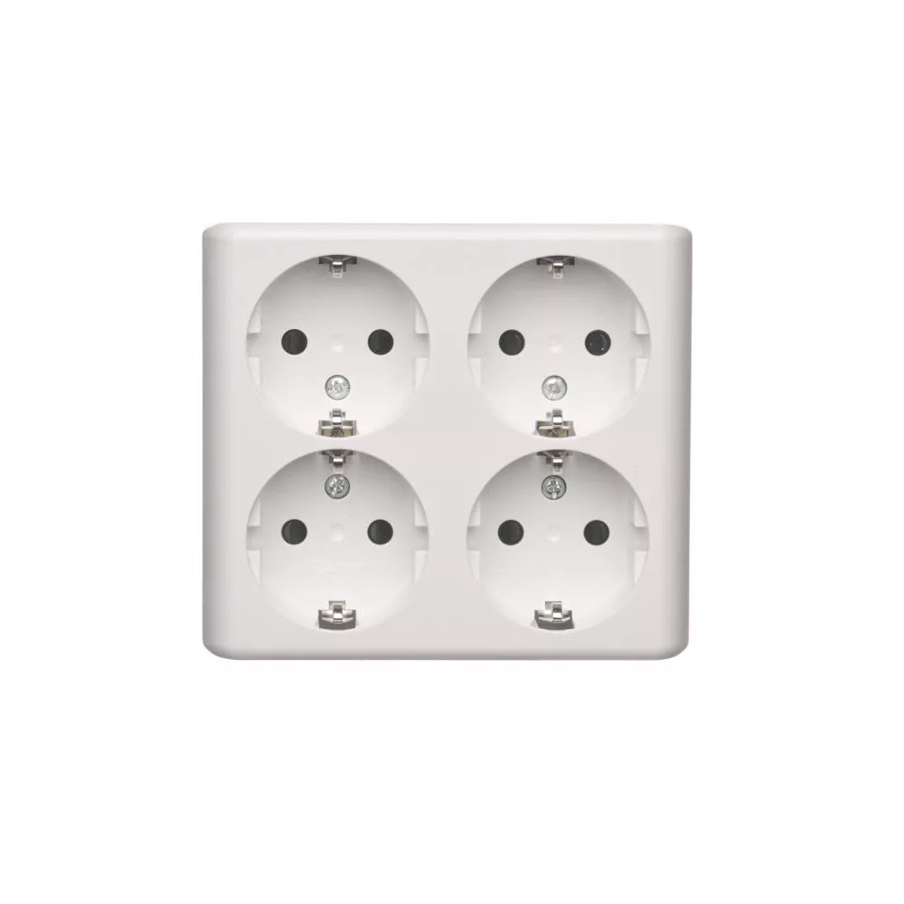 Simon 54 WMEW-22411x-101 Gniazdo poczwórne Schuko natynkowe z przesłonami torów prądowych wersja skandynawska 16A, 250V~, zaciski śrubowe; biały