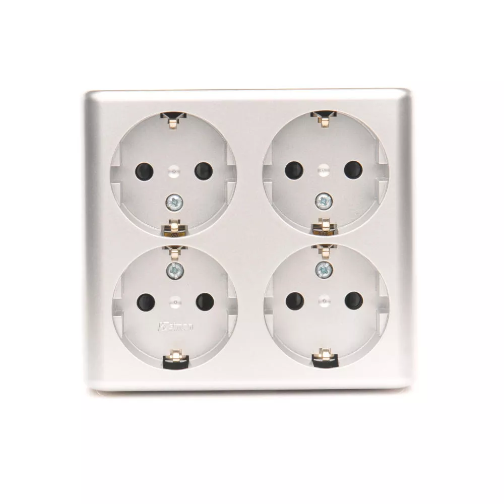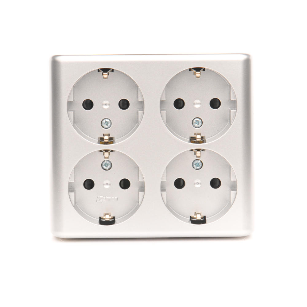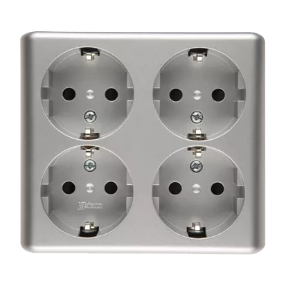 Simon 54 WMEW-22411N-043 Gniazdo poczwórne Schuko natynkowe z przesłonami torów prądowych wersja skandynawska 16A, 250V~, szybkozłącza; srebrny mat