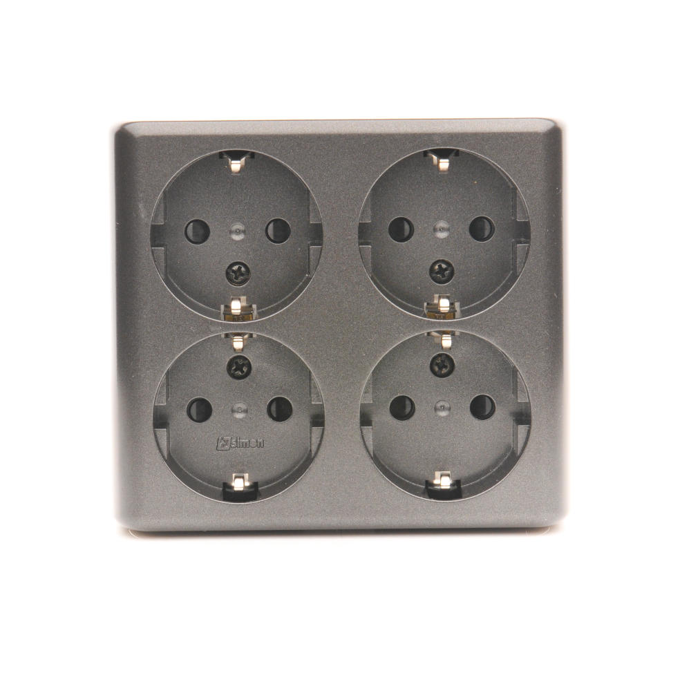Simon 54 WMEW-22411N-048 Gniazdo poczwórne Schuko natynkowe z przesłonami torów prądowych wersja skandynawska 16A, 250V~, szybkozłącza; antracyt