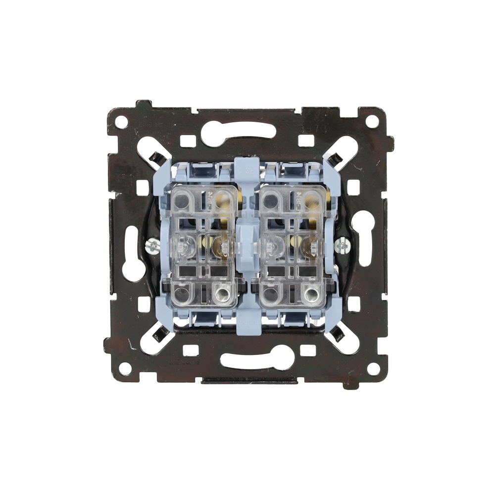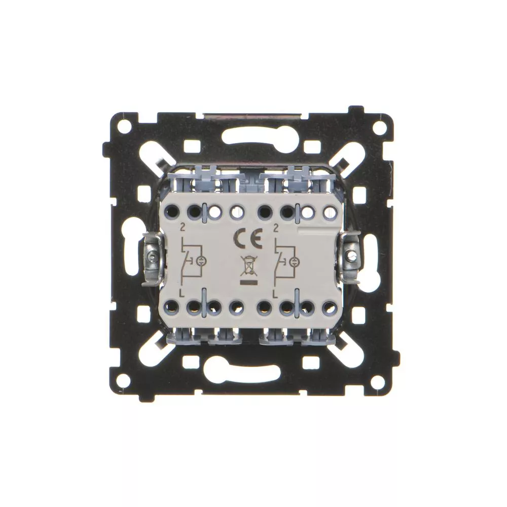 Simon 55 WMDL-0106L3R-0XX Przycisk podwójny zwierny bez piktogramu – osobne podświetlenie dla każdego klawisza (mechanizm) 10 AX, 250 V~, szybkozłącza, czarna rama montażowa