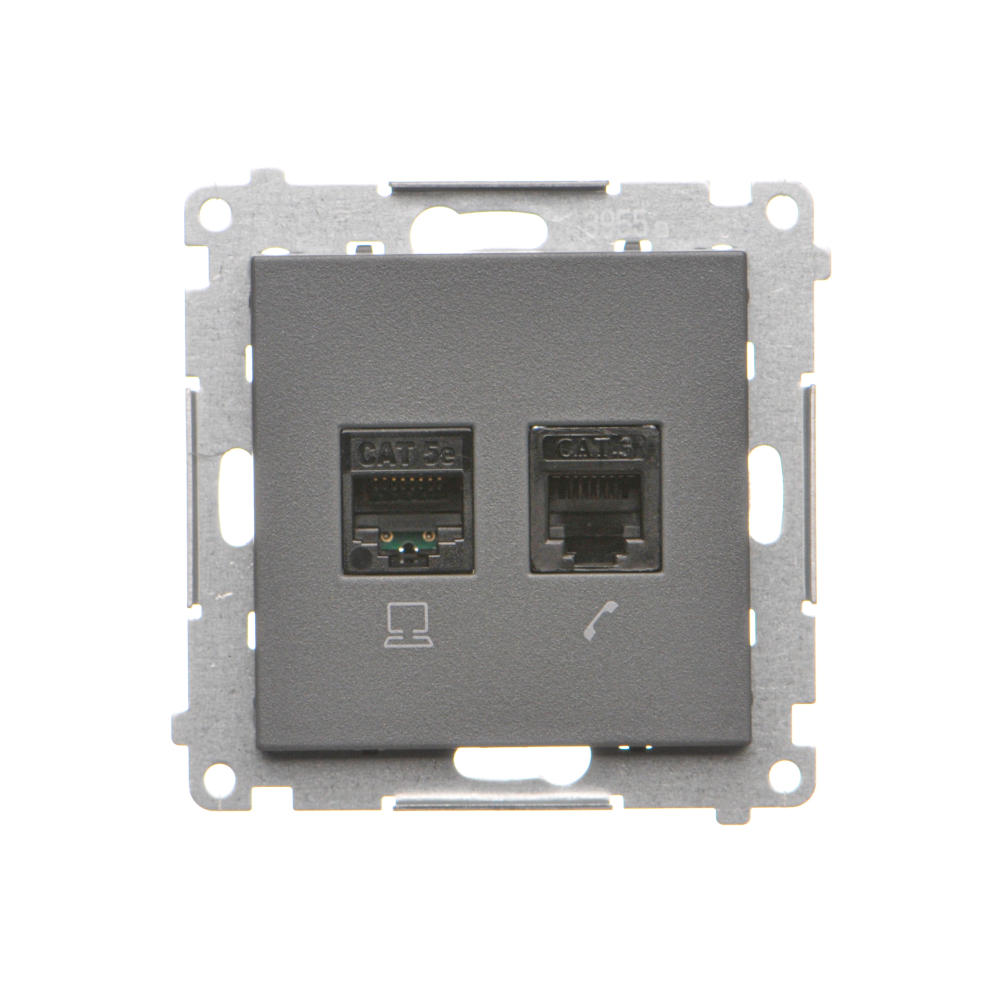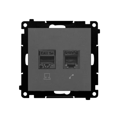 Simon 55 WMDK-16105N-116 Gniazdo komputerowe RJ45 kategoria 5e + telefoniczne RJ12 (moduł); Grafitowy mat