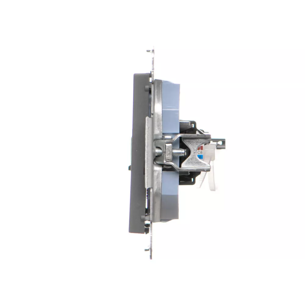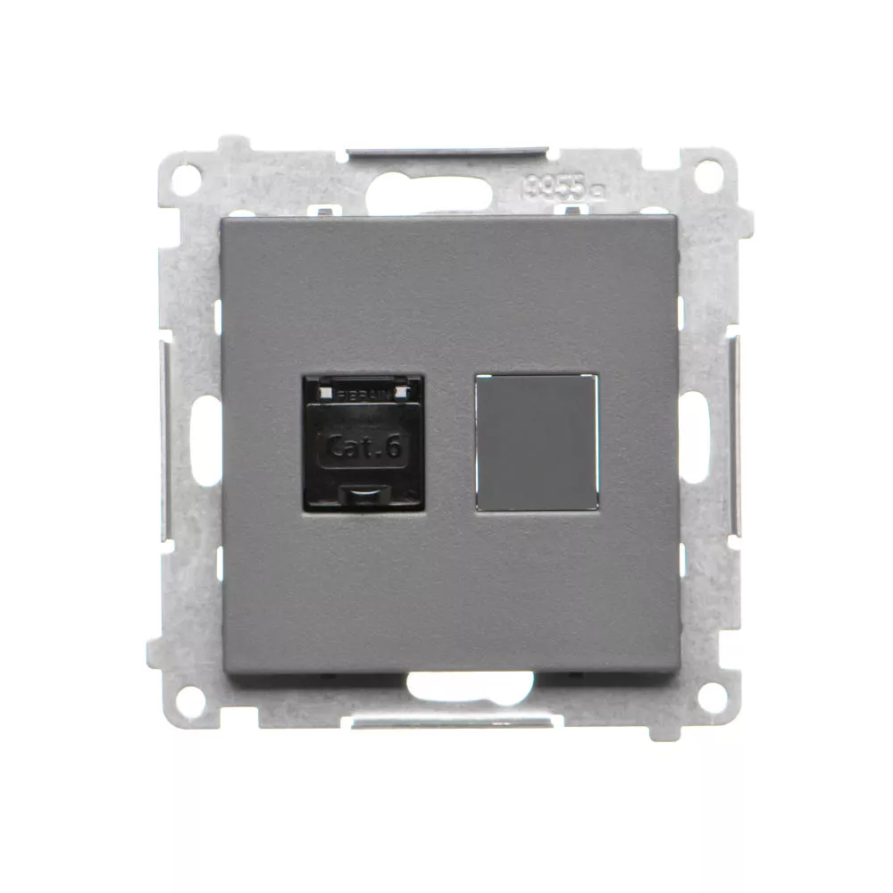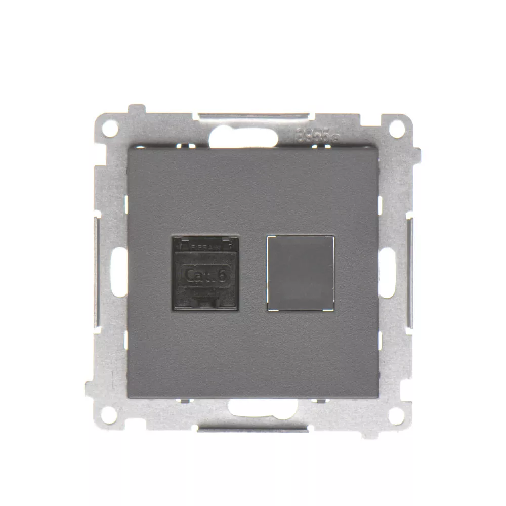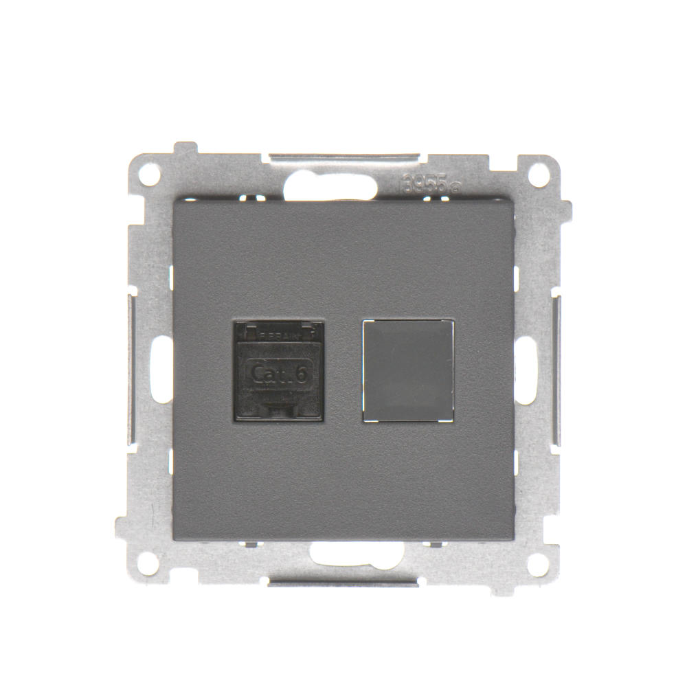 Simon 55 WMDA-P91xx5-116 Gniazdo komputerowe pojedyncze RJ45 kategoria 6, z przesłoną przeciwkurzową (moduł); Grafitowy mat