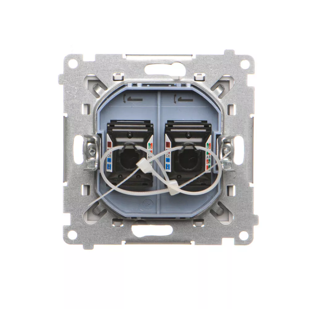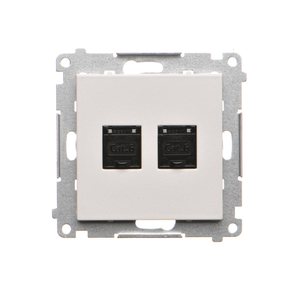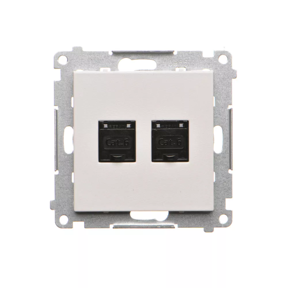 Simon 55 WMDA-P92xx5-114 Gniazdo komputerowe podwójne RJ45 kategoria 6, z przesłoną przeciwkurzową (moduł); Jasnoszary mat