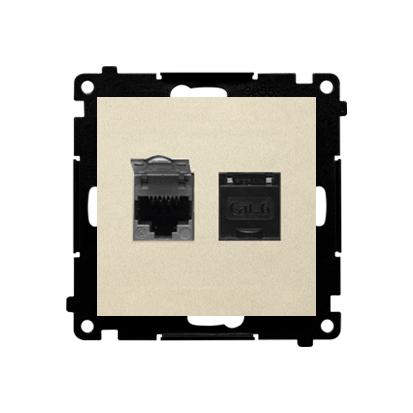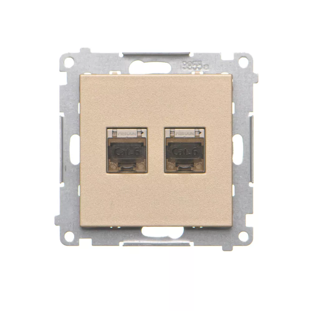 Simon 55 WMDA-P93xx6-144 Gniazdo komputerowe podwójne RJ45 kategoria 6, ekranowane z przesłoną przeciwkurzową (moduł); Szampański mat