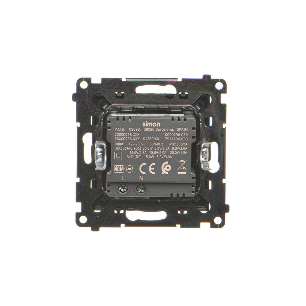 Simon 55 WMDS-0042L2-149 Ładowarka USB C+A (moduł), 30W, 230V; Czarny mat