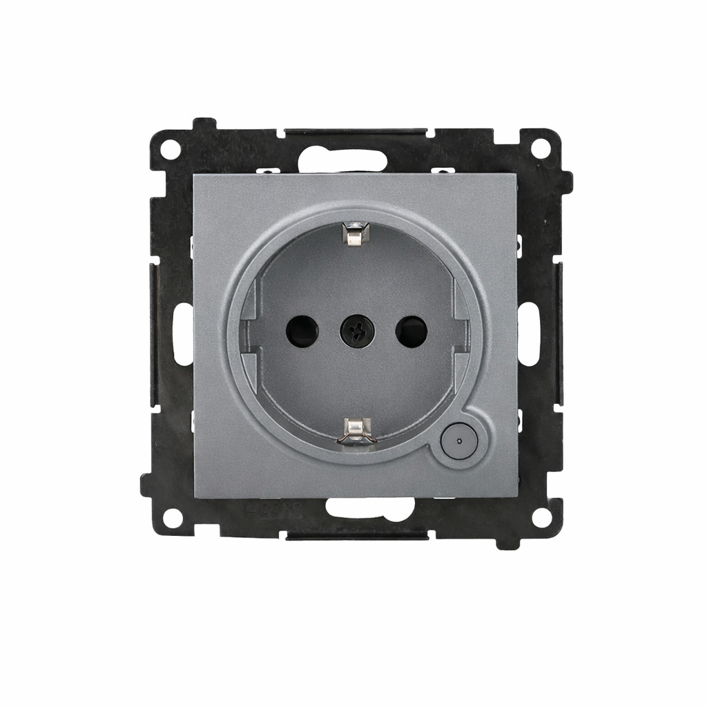 Simon 55 GO WMDS-TEGSZ1W-116 Gniazdo schuko Wi-Fi z przyciskiem i wbudowanym pomiarem energii, sterowany smartfonem – SOCKET 1x16 A, 230 V, (moduł); Grafitowy mat