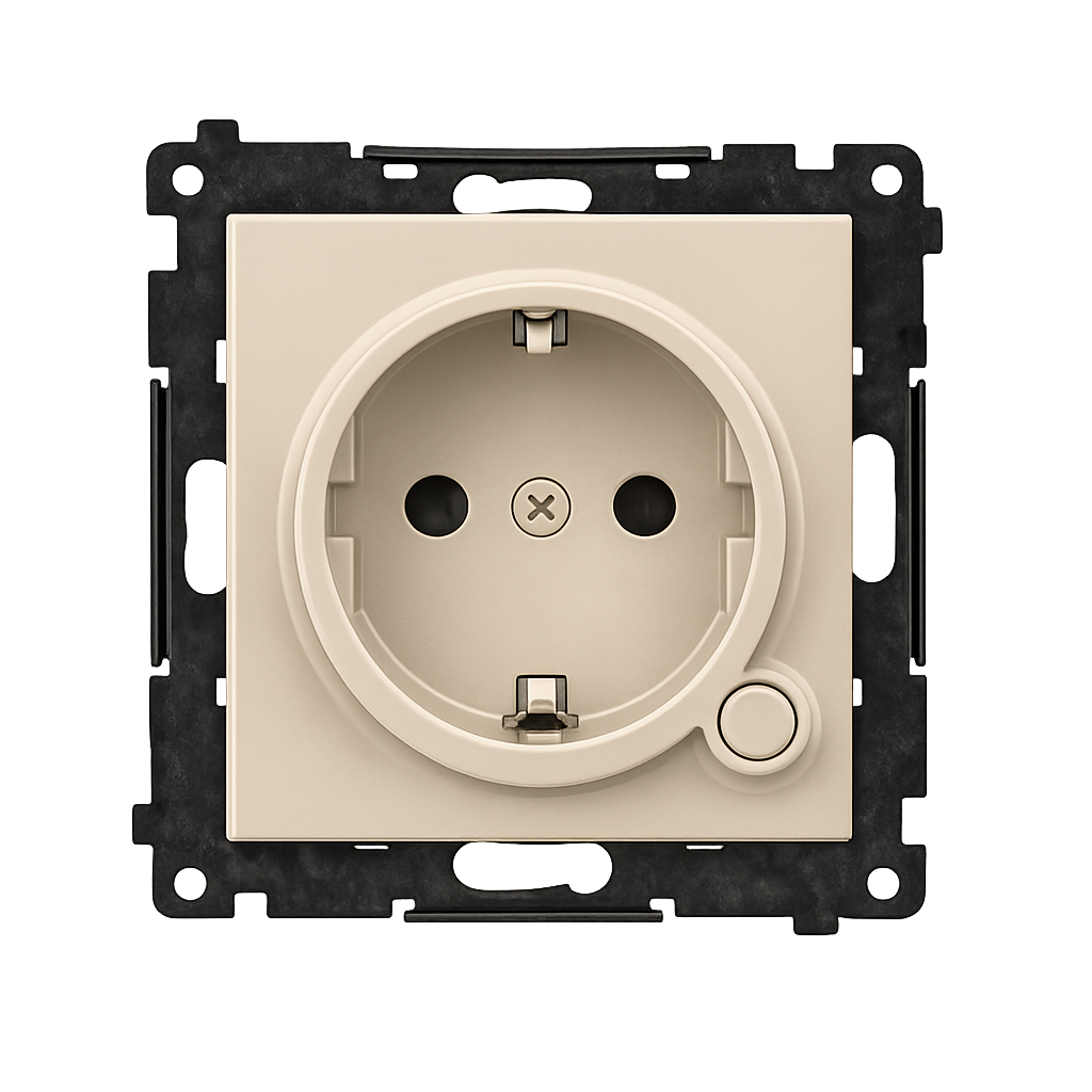 Simon 55 GO WMDS-TEGSZ1W-144 Gniazdo schuko Wi-Fi z przyciskiem i wbudowanym pomiarem energii, sterowany smartfonem – SOCKET 1x16 A, 230 V, (moduł); Szampański mat