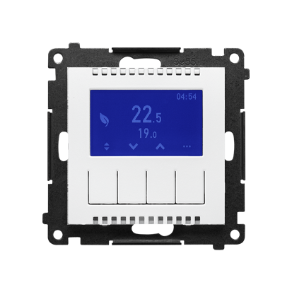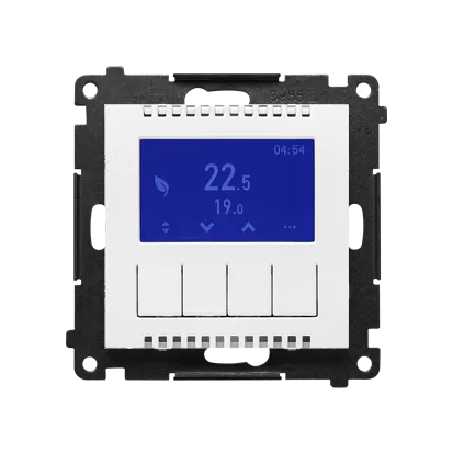 Simon 55 WMDR-18XXX1-111 Termostat programowalny z wyświetlaczem z wew/zewn czujnikiem temperatury, bez sondy (moduł) 16(2) A, 230V~; Biały mat